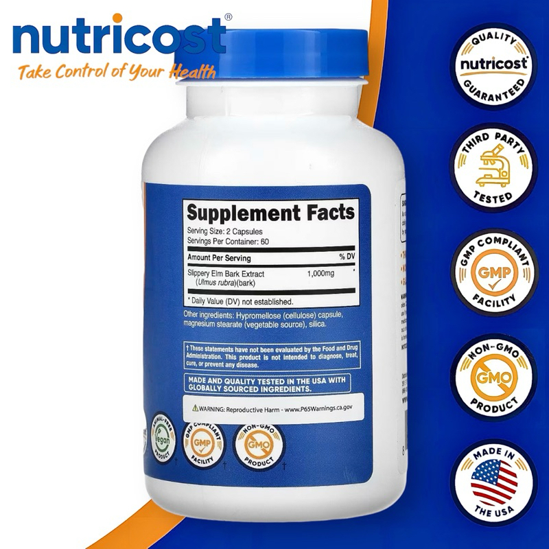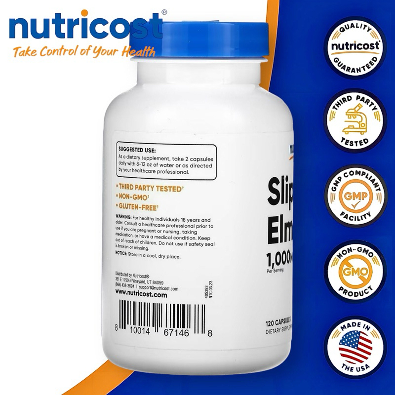 Slippery Elm Bark, 1,000 mg, 120 Capsules (500 mg per Capsule)