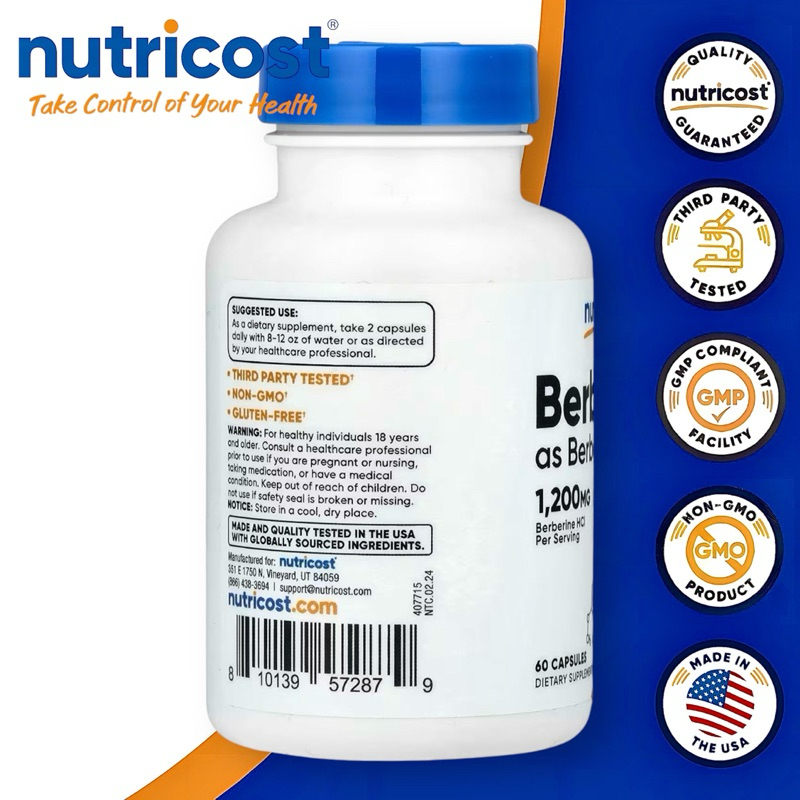 Berberine, 1,200 mg, 60 Capsules (600 mg per Capsule)