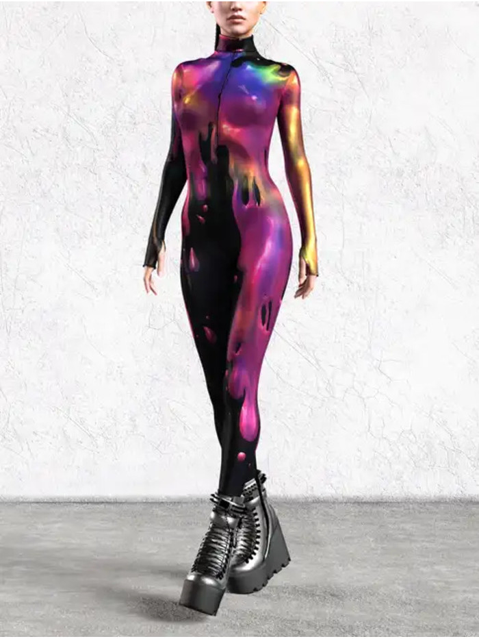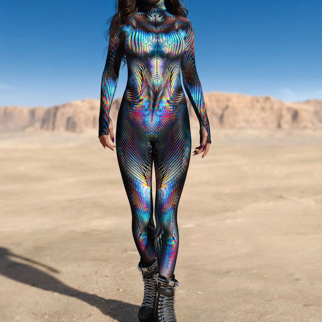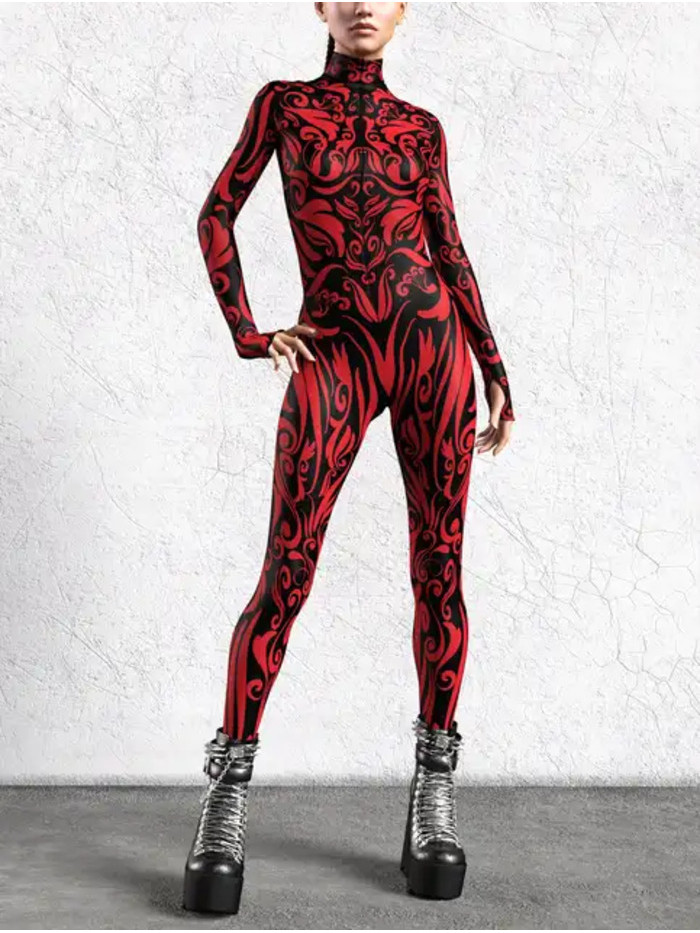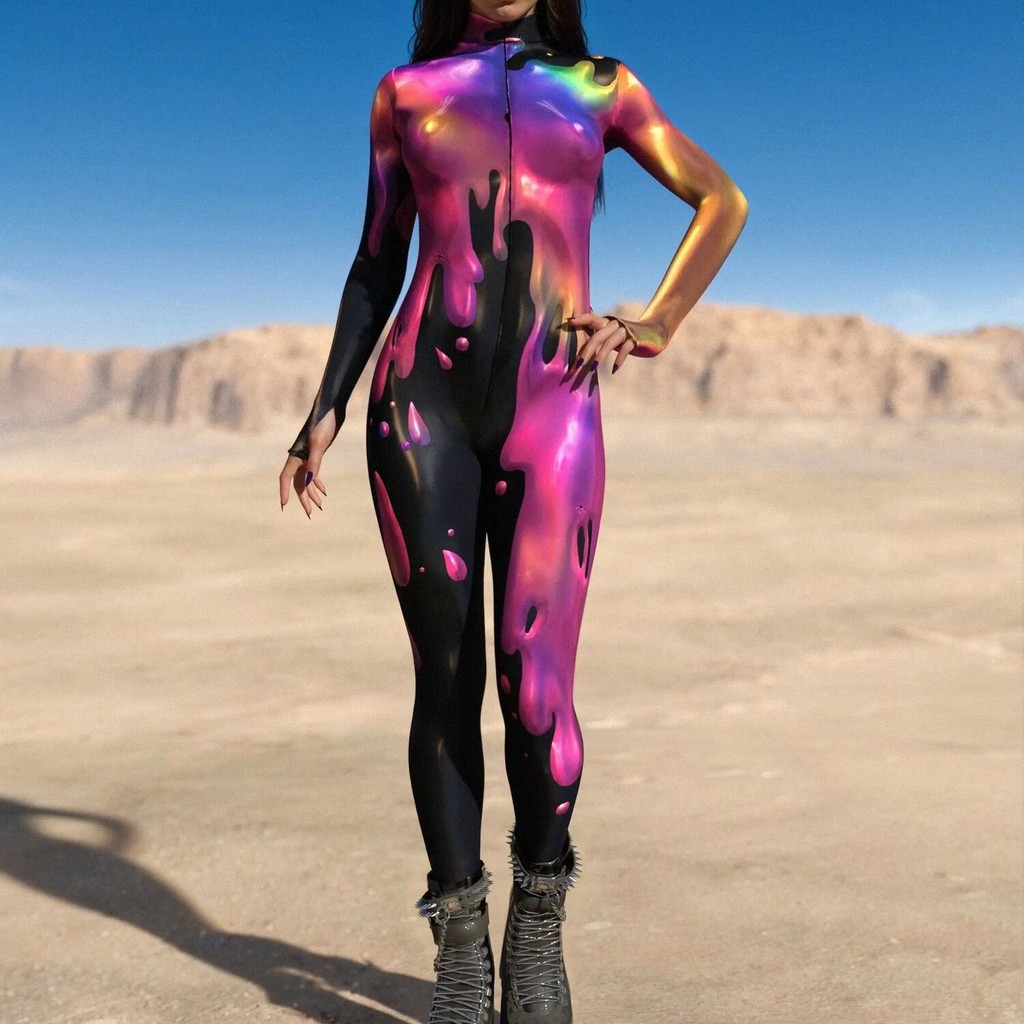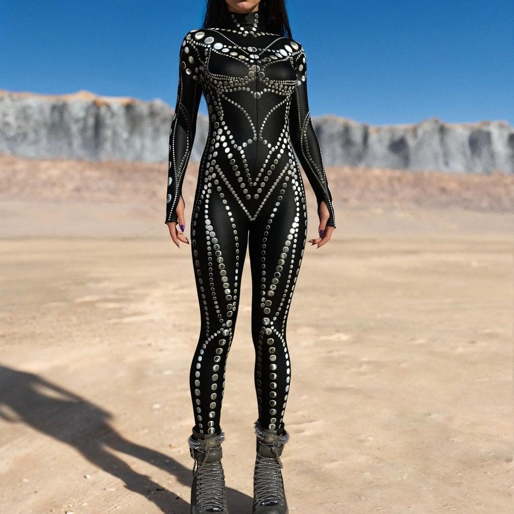 キ Halloween Cosplay Costumes For Women Carnival Punk Steampunexy Slimjumpsuit Performance Burning