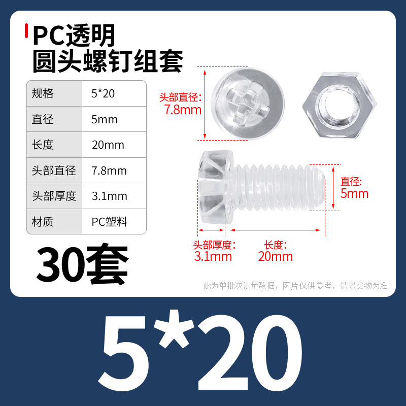 【 MDX 】 PC Transparent Cross Round Head Screw Nut Acrylic Plastic Nail Complete Plastic Combination Screw M2M2.5M3M4M5M6M8