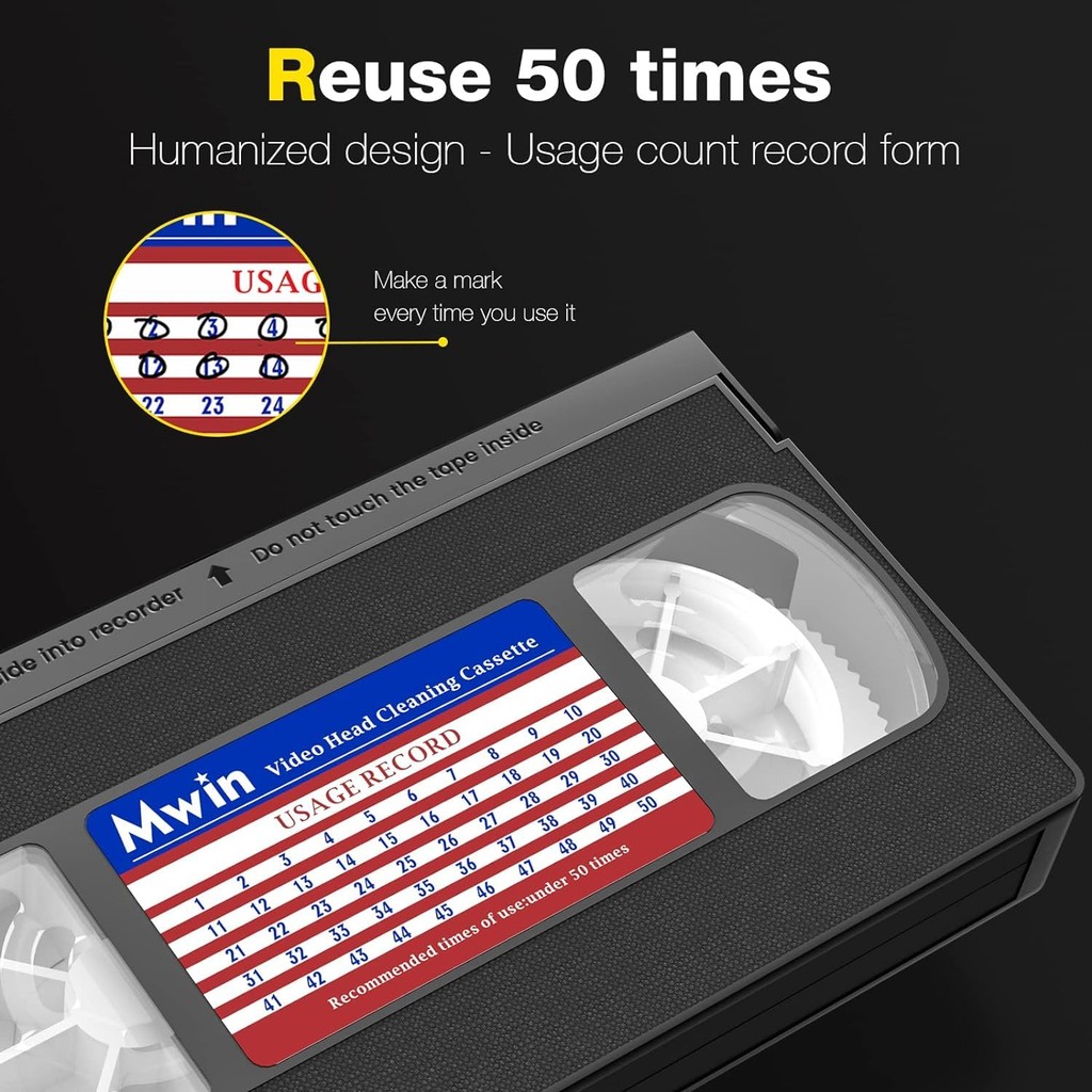 MWIN VHS/VCR Head Cleaner, Dry Technology, Liquid-Free, Reusable Video Head Cleaning Tape【Direct From Japan】