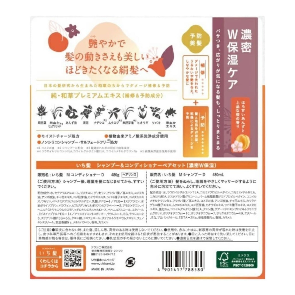 Direct From Japan Bulk Purchase Ichikami Dense Double Moisturizing Care Shampoo and Conditioner Set