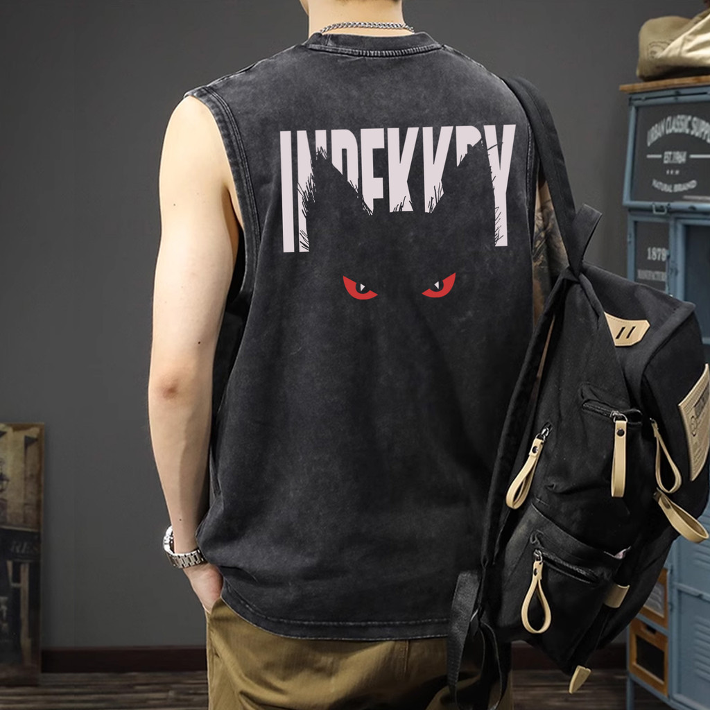 Y-T Men's T-Shirt Tank Top Sleeveless Comfortable To Wear Cotton 1 High Quality "INDEKKDY CAT" Pattern No Need Iron Casual Style