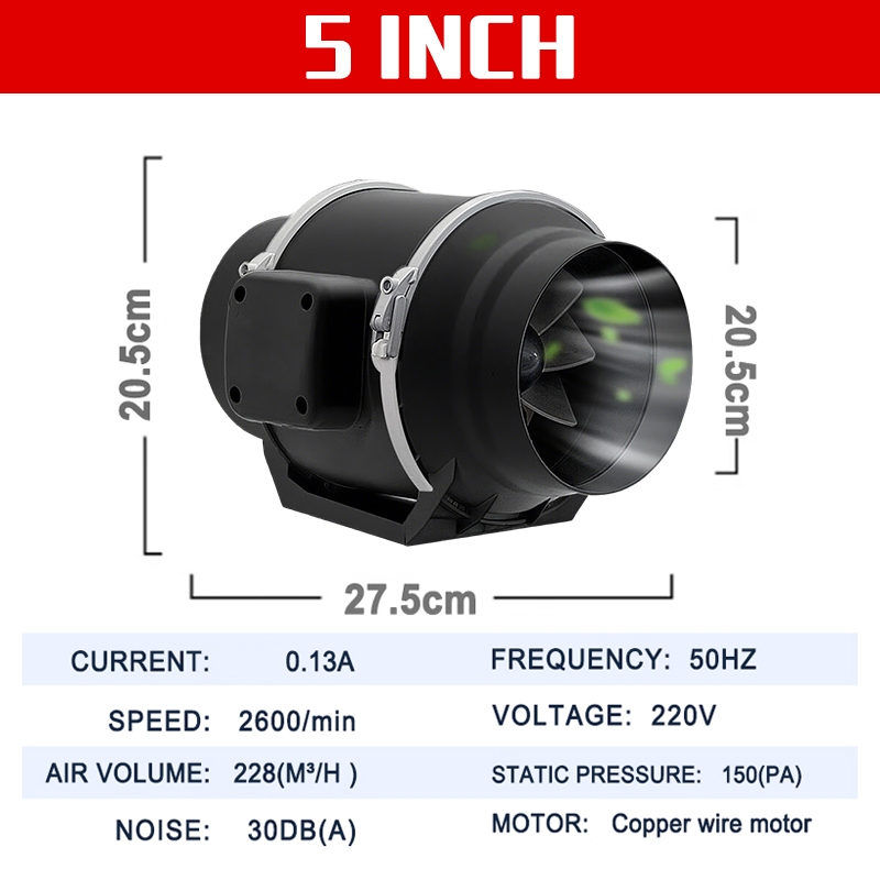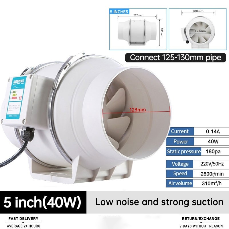 4/5/6/8 inch High Suction Inline Duct Booster Fan Extraction Fan Kitchen Strong Ventilation Fan