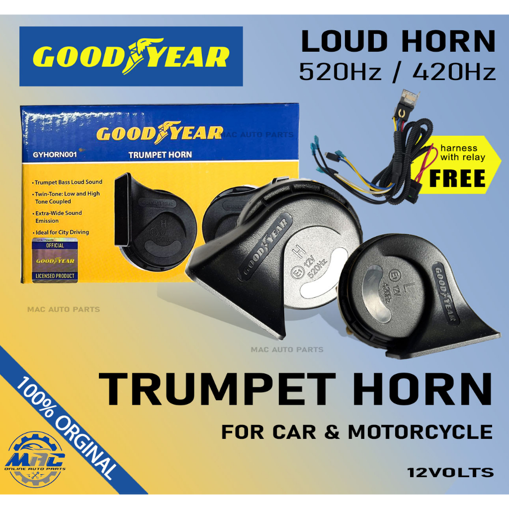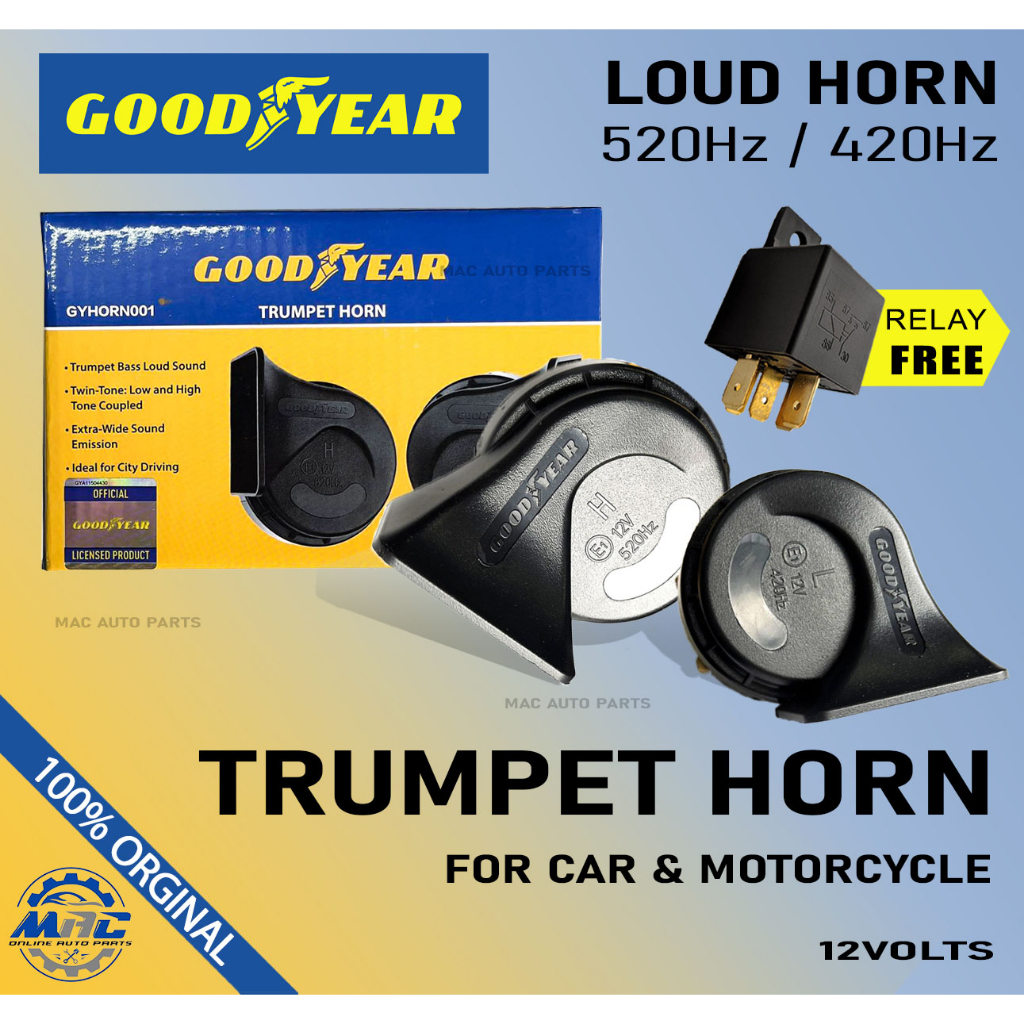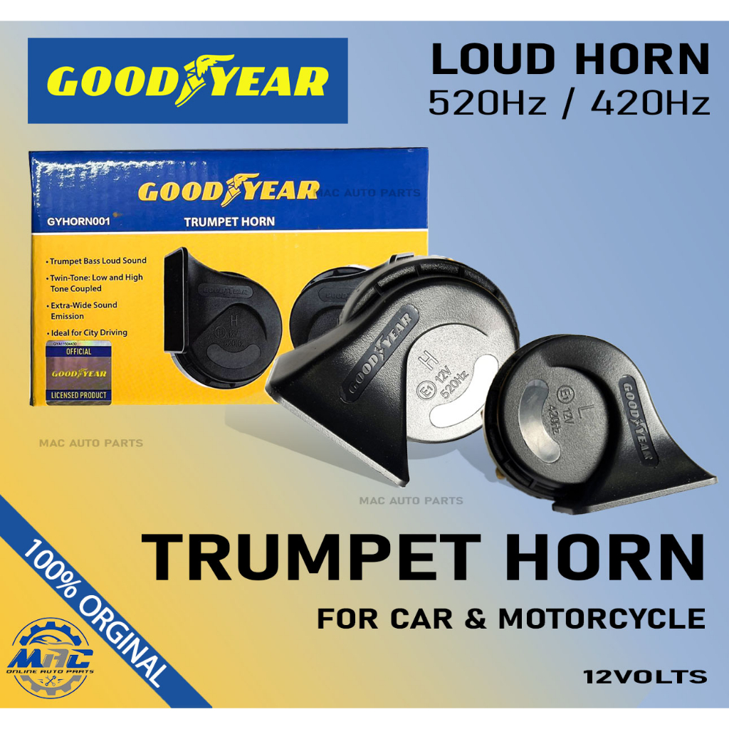 GoodYear Trumpet Horn 12V LOUD HORN 520Hz 420Hz Car and Motorcycle Horn - GYHORN001