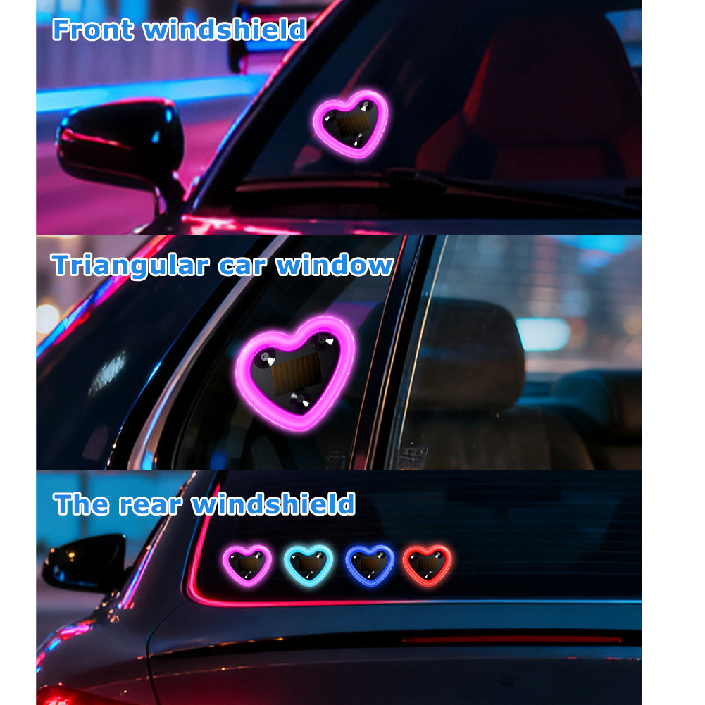 Car Interior LED Heart Neon Light Solar Energy Window Decor