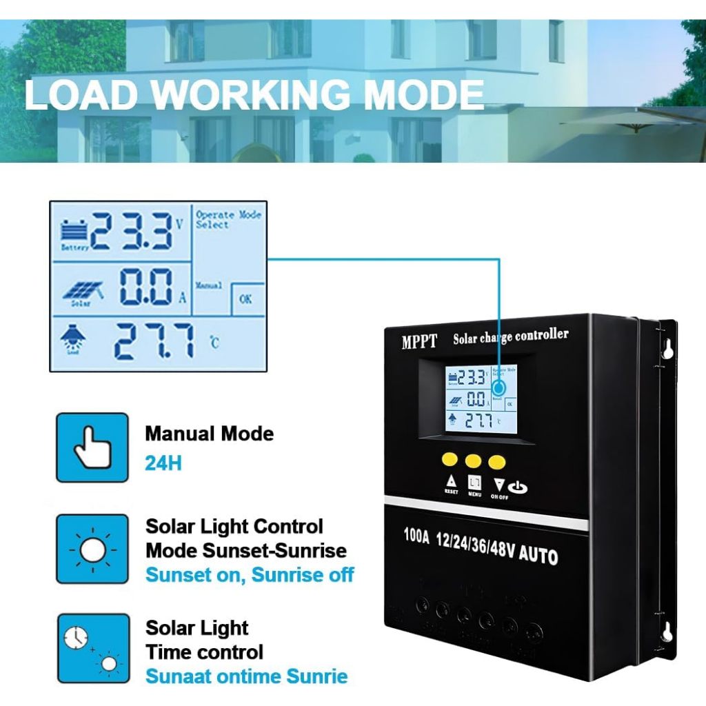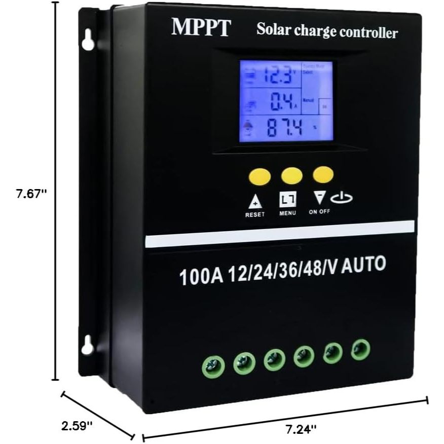 100A MPPT Solar Charge Controller 12/24/36/48V LCD Max 100V Input Dual USB for Lead-Acid/Lithium