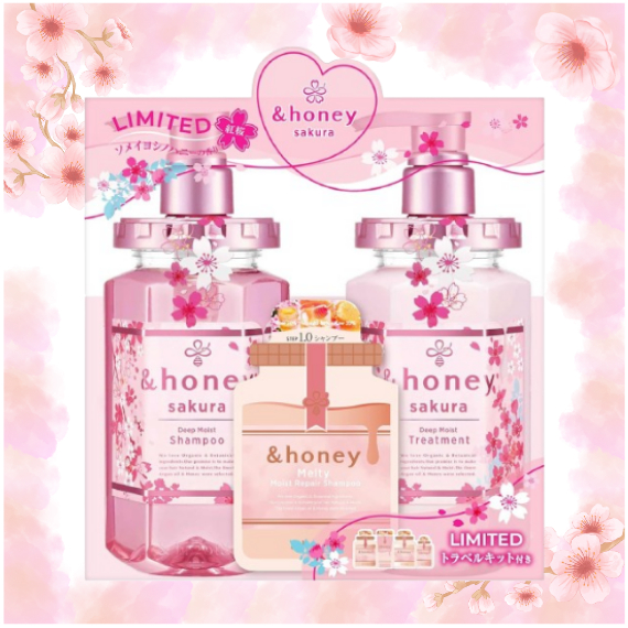 &honey Sakura Deep Moist Shampoo & Sakura Treatment Cherry Blossom Bottle Set Organic Best Cosme Somei Yoshino honey [Direct from Japan]
