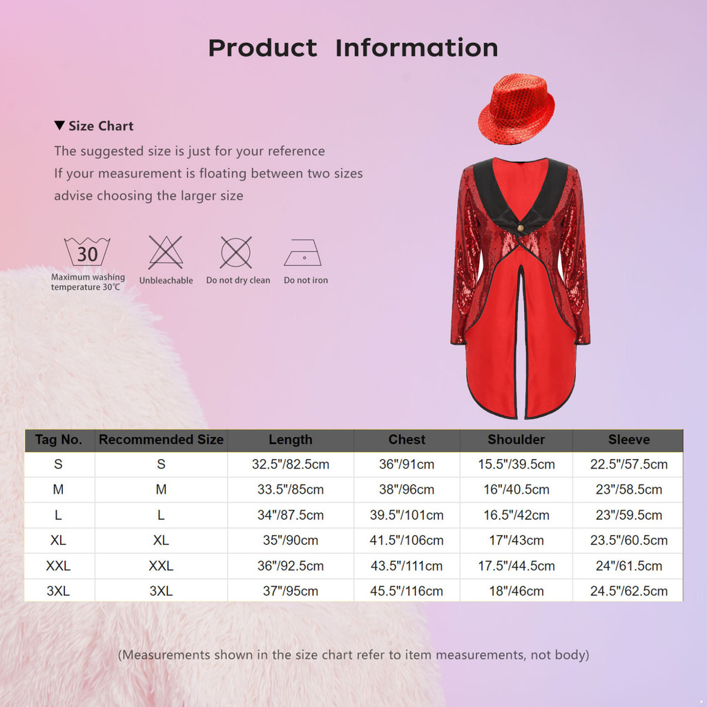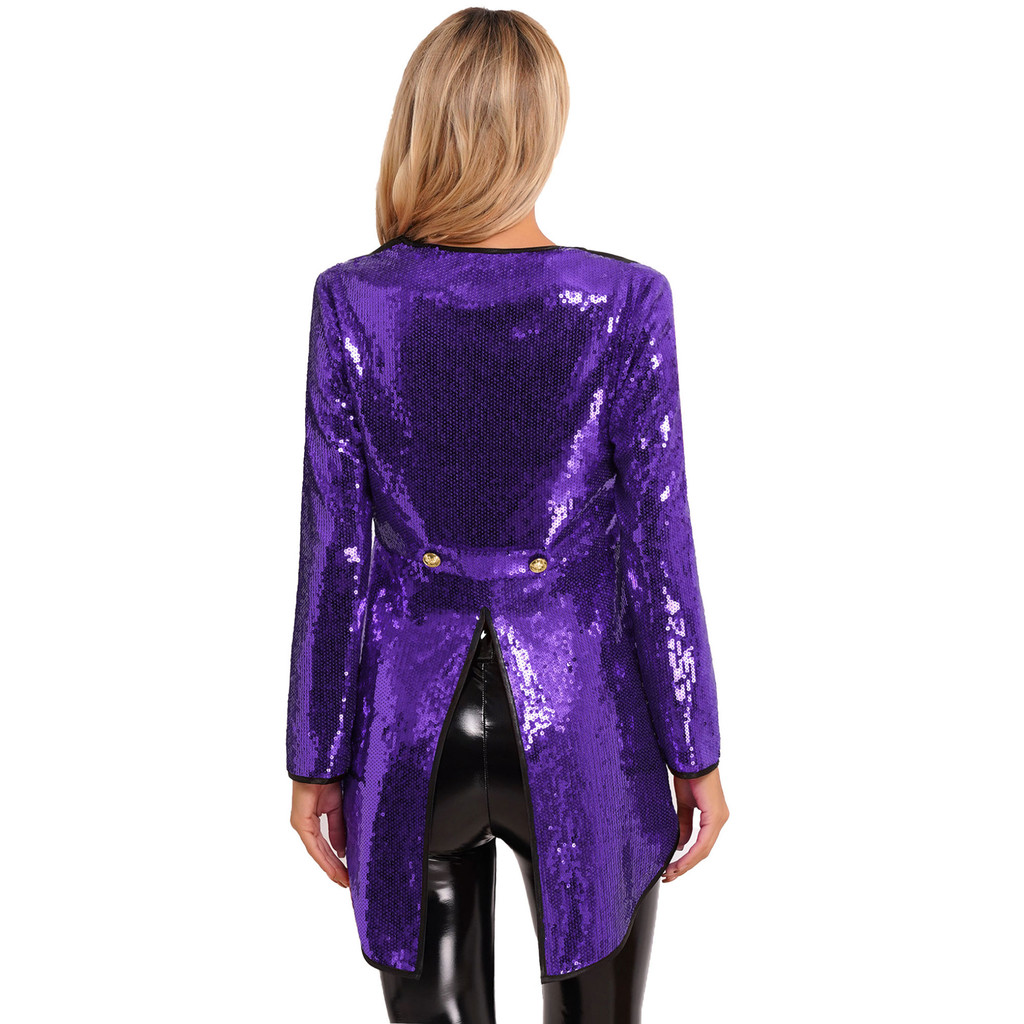Oyolan Womens Magician Costume Set Long Sleeve One-Button Sequin Tailcoat with Hat for Carnival Party Cosplay Role Play