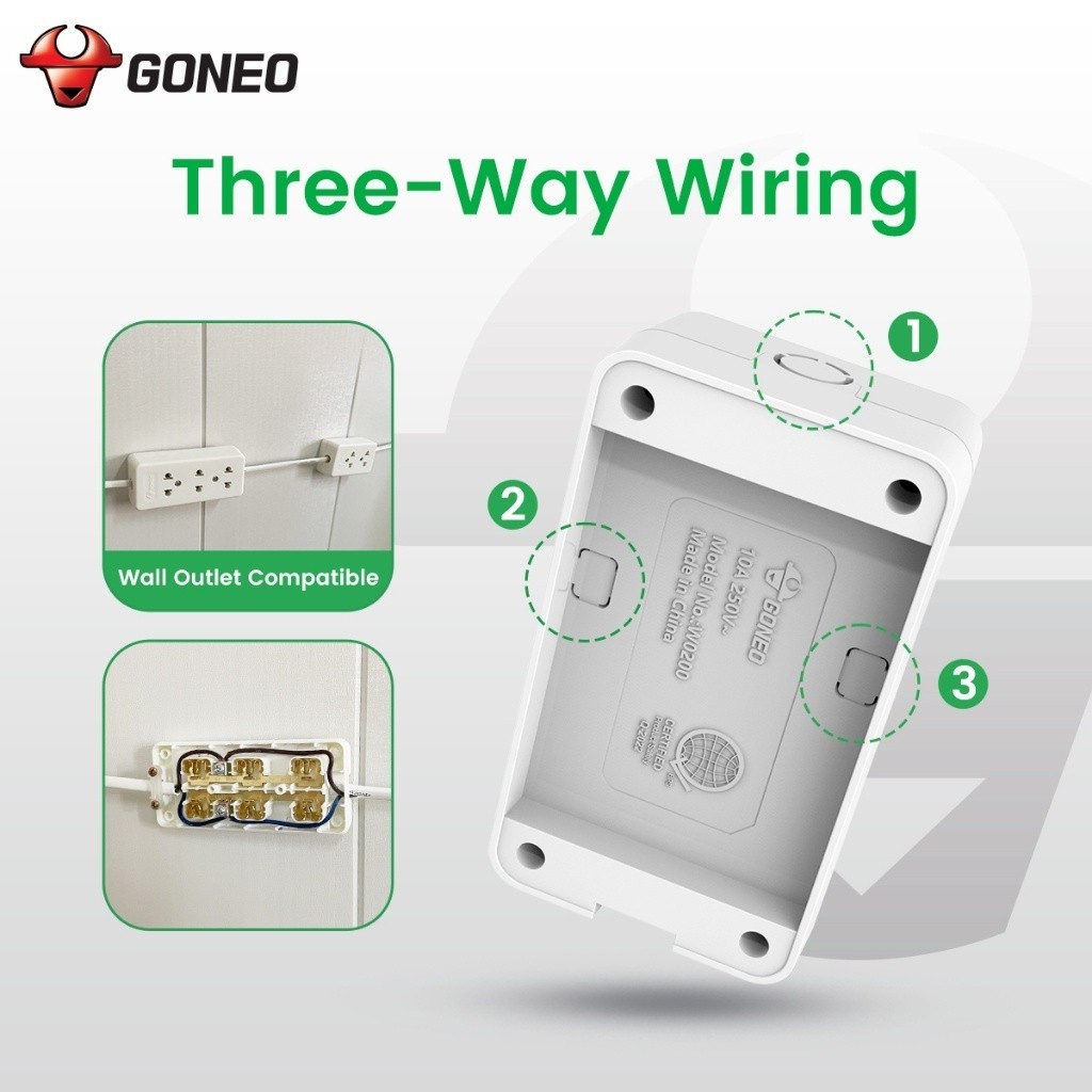 GONEO Wallmount Surface type 2,3 and 4 Gang Rewireable Wall Power Strip Socket 2500w, 10A W Series