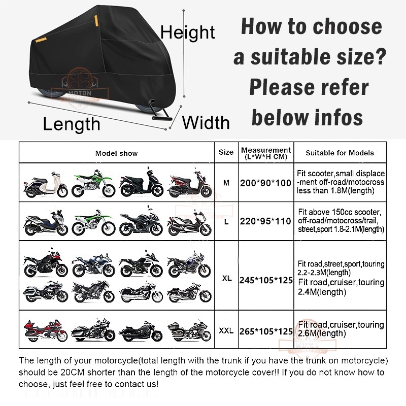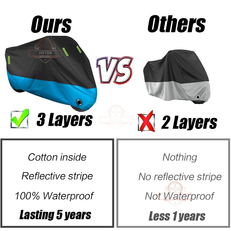 Motorcycle Cover Waterproof 3 Layers Heavy Duty Rain Dust Cover Sun Protective cover with Lock Hole