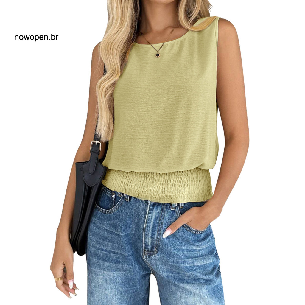 Loose Fit Women Tank Top Women Vest Women’s Vest Top O-neck Soft Stretchy Pleated Hem Loose Fit Pullover Blouse for Party Vacation Wear – Lightweight Summer Tank Top