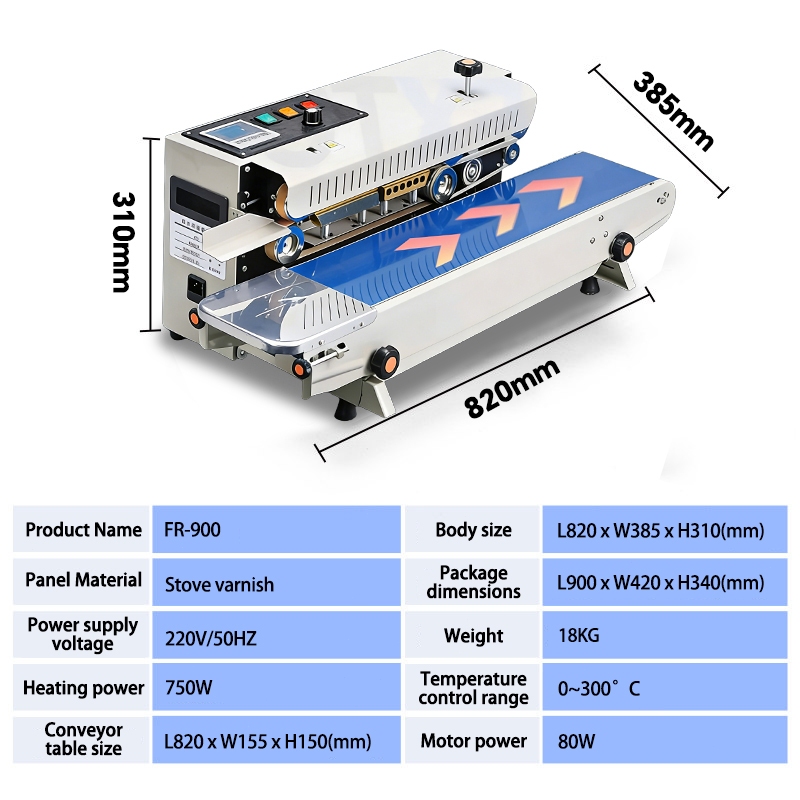 NWE FR-900/400 Automatic Continuous Sealing Machine Commercial One-Click Electric Heat Sealer