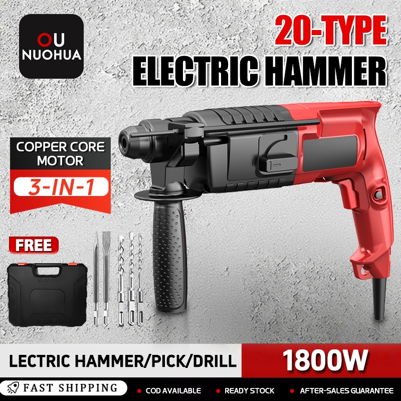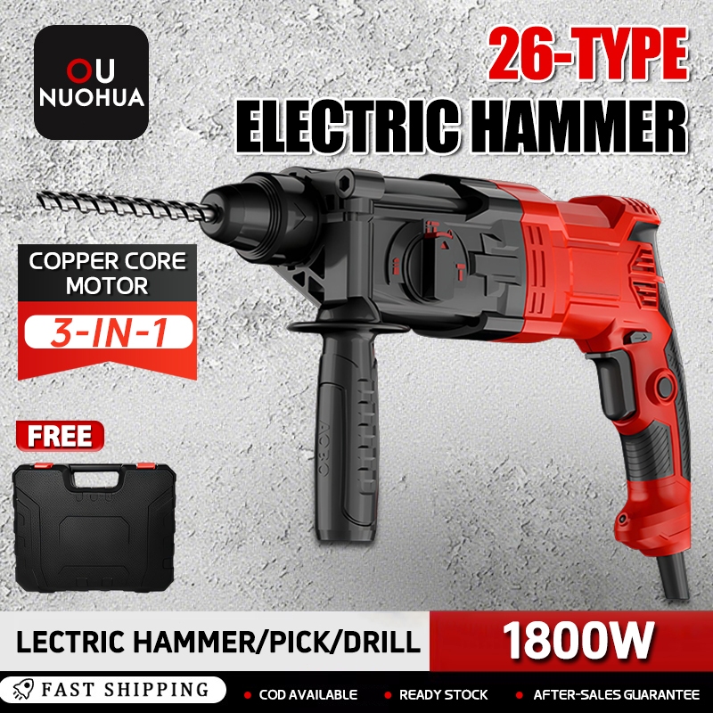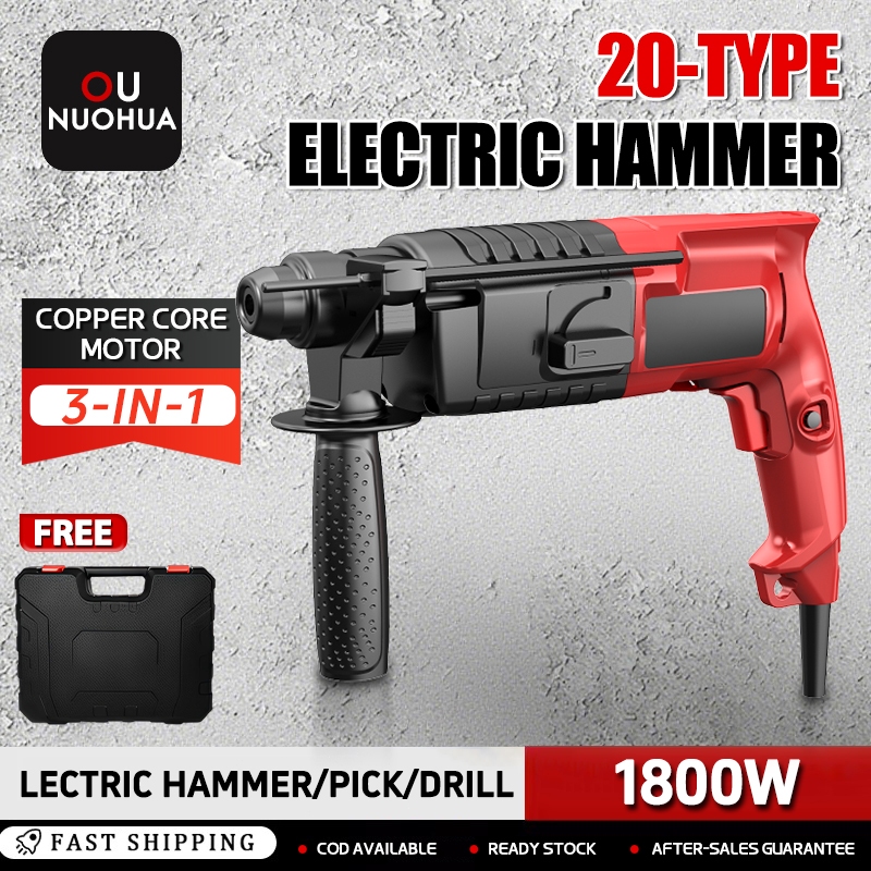 Demolition Electric Rotary Hammer 1800W Heavy Duty Professional 3 In 1 Multi-Function Impact Drill