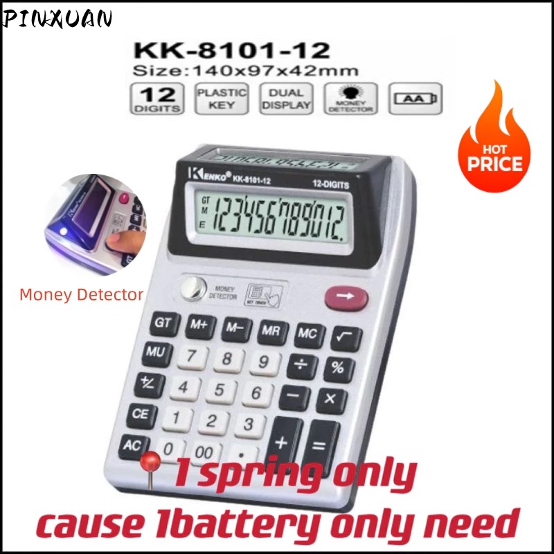 PINXUAN 12-digit dual display calculator with counterfeit money detection function (only 1 battery)