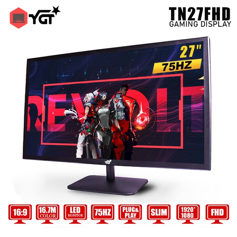 YGT SLIM FHD 27 inch Monitor Desktop Game Display With AC Power Card and HDMI Cable included