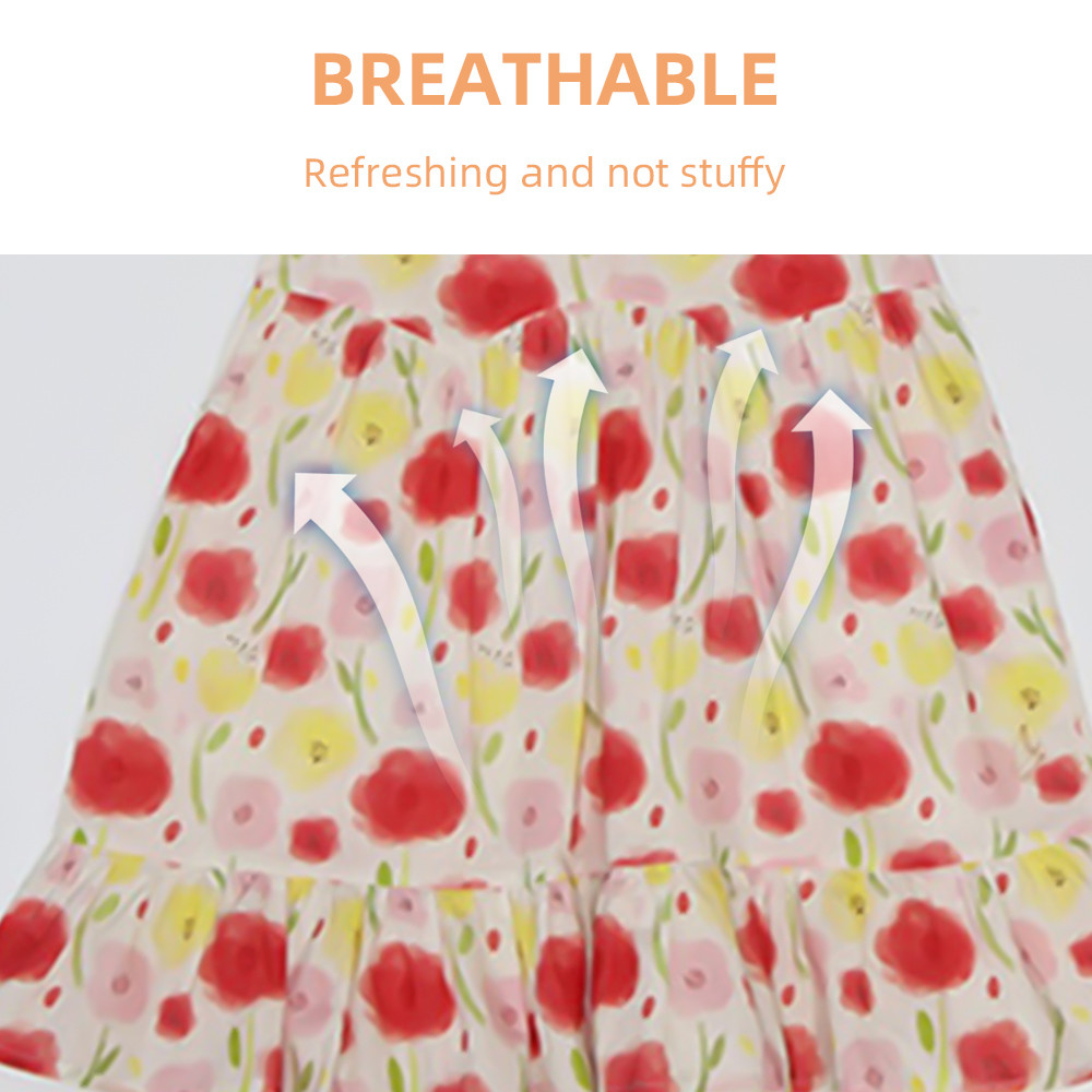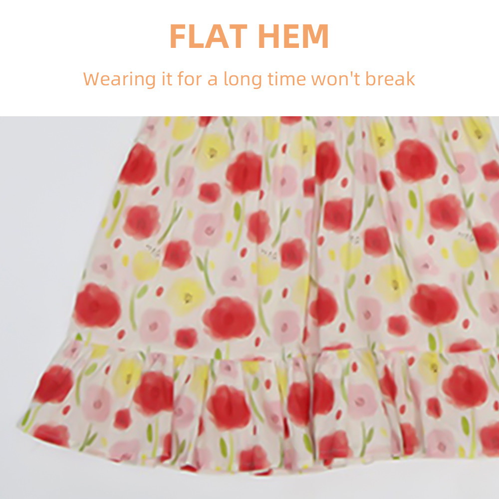 Red Printed U-neck Skirt With Flying Sleeves Loose Fitting Dress Sweet Pleated Waist Cinching Style
