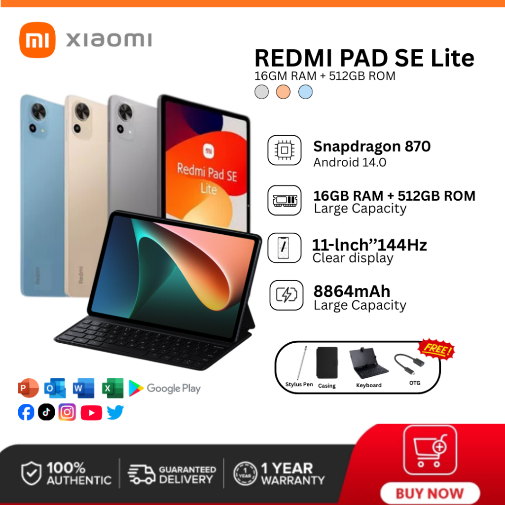 Redmi Tab 16+512GB 144Hz WQHD Display Snapdragon 870 Android Pad Tablets Online Class Cod