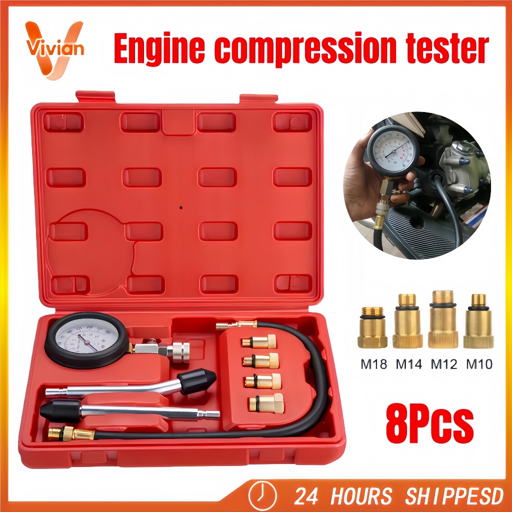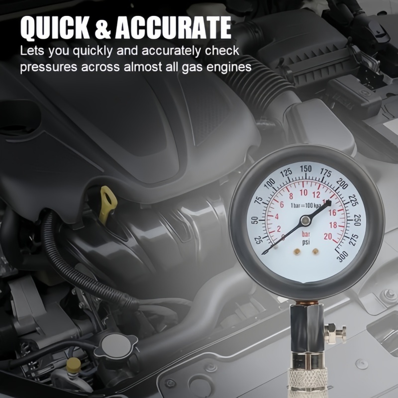 Gasoline Engine Compression Tester Cylinder 0-300 PSI Automobile Pressure Gauge Kit with M10 M12 M14 M18 Adapter