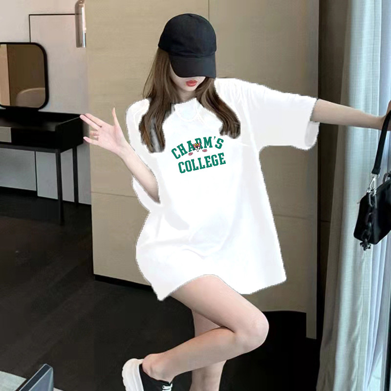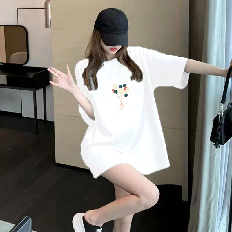 Creative printed short sleeve large T-shirt women loose 2024 new summer trend slimming large size cotton T-shirt top