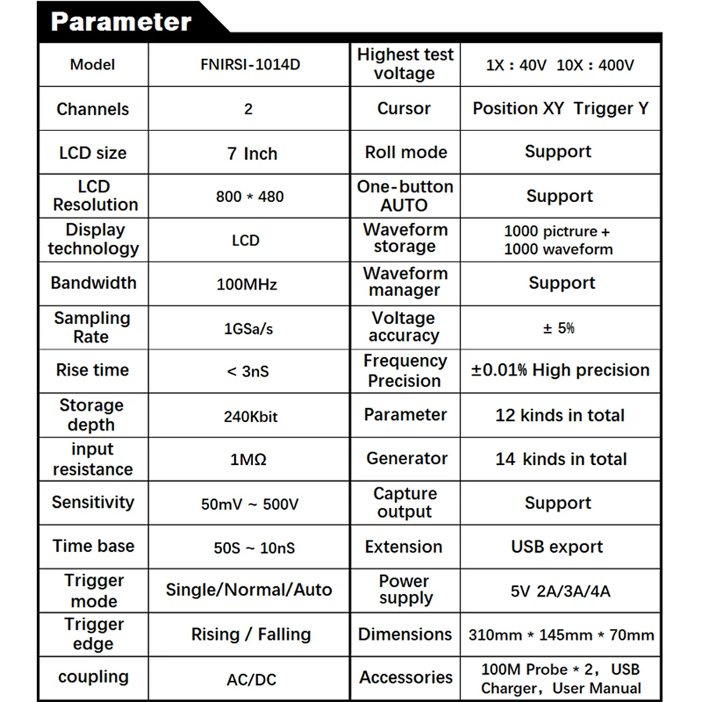 ⭐⭐⭐FNIRSI-1014D Digital Oscilloscope 2In1 Dual Channel Input Signal Generator 100MHz* 2 Ana-log Bandwidth 1GSa/s Sampling Rate