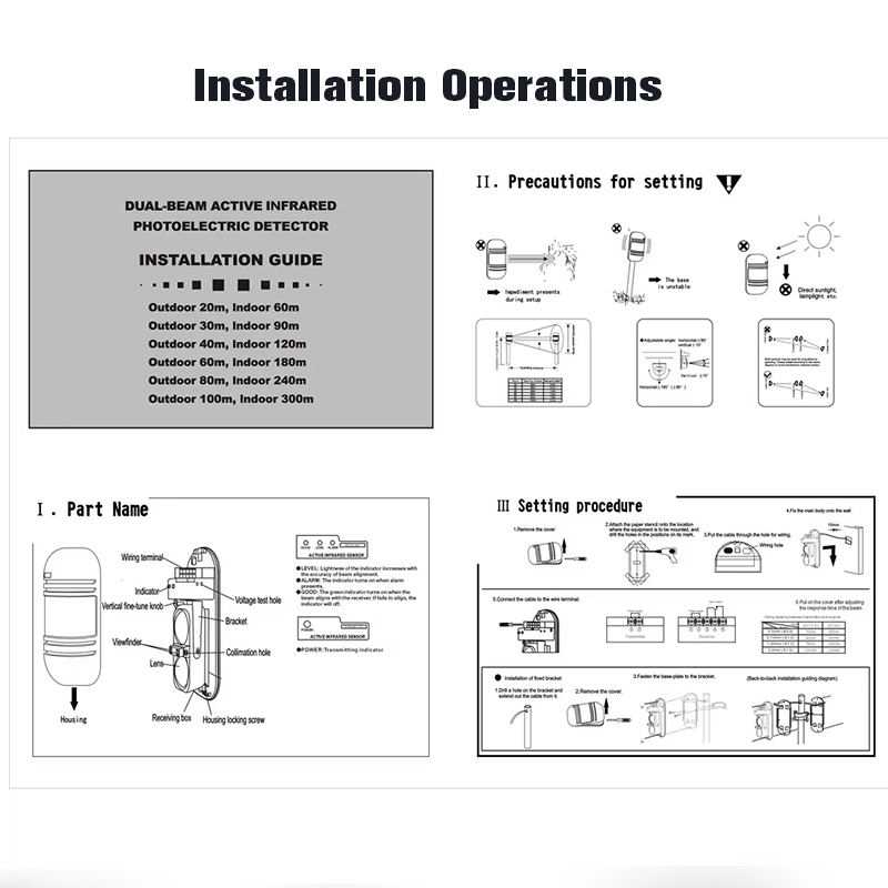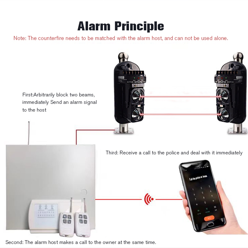 Infrared Beam Detector Home Security Alarm Waterproof Dual Beam Sensor Active Infrared Intrusion Detector IR 20m~100m Outdoor Perimeter Wall Barrier Fence