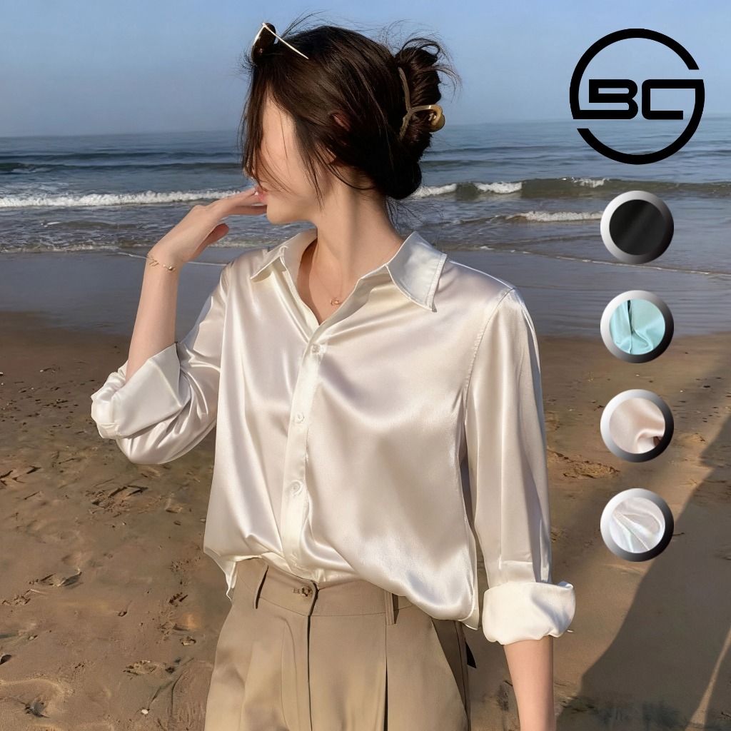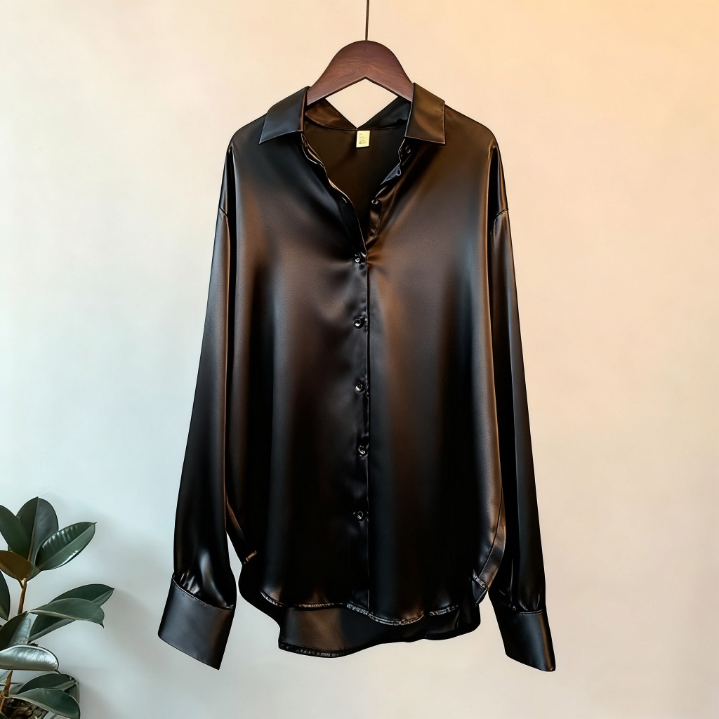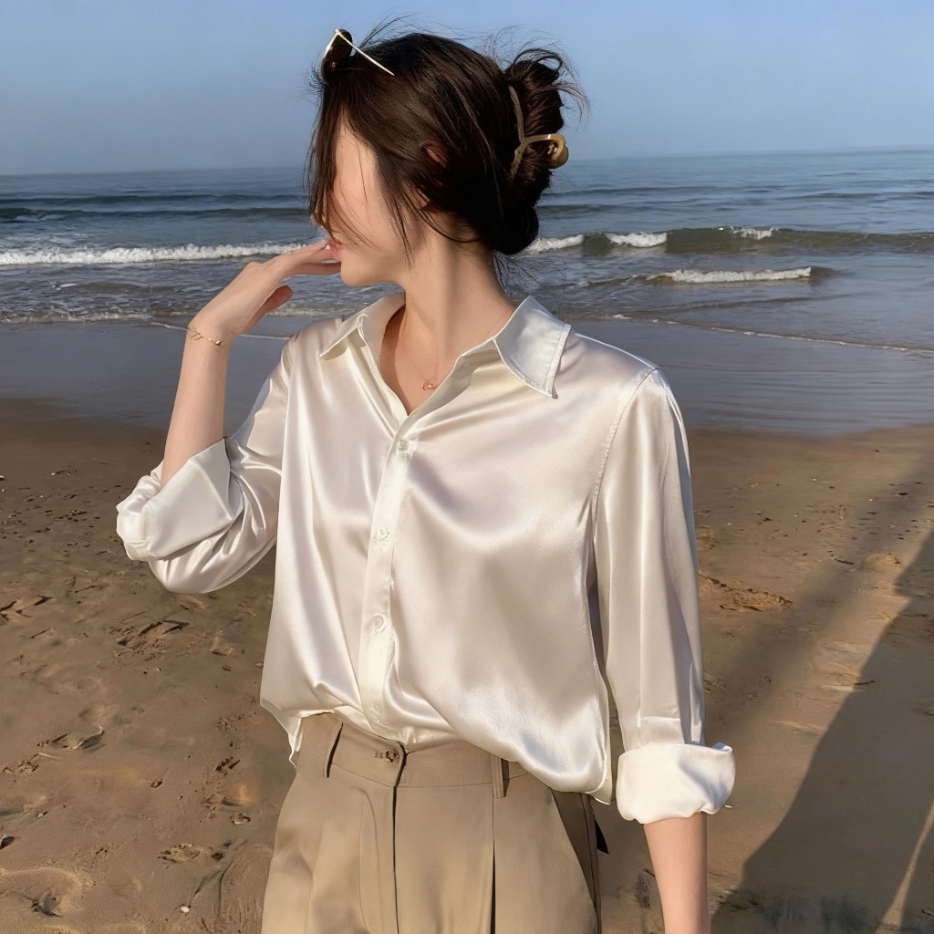 Women's satin long-sleeved loose-fitting shirt, fashionable and casual top, plus size. suitable