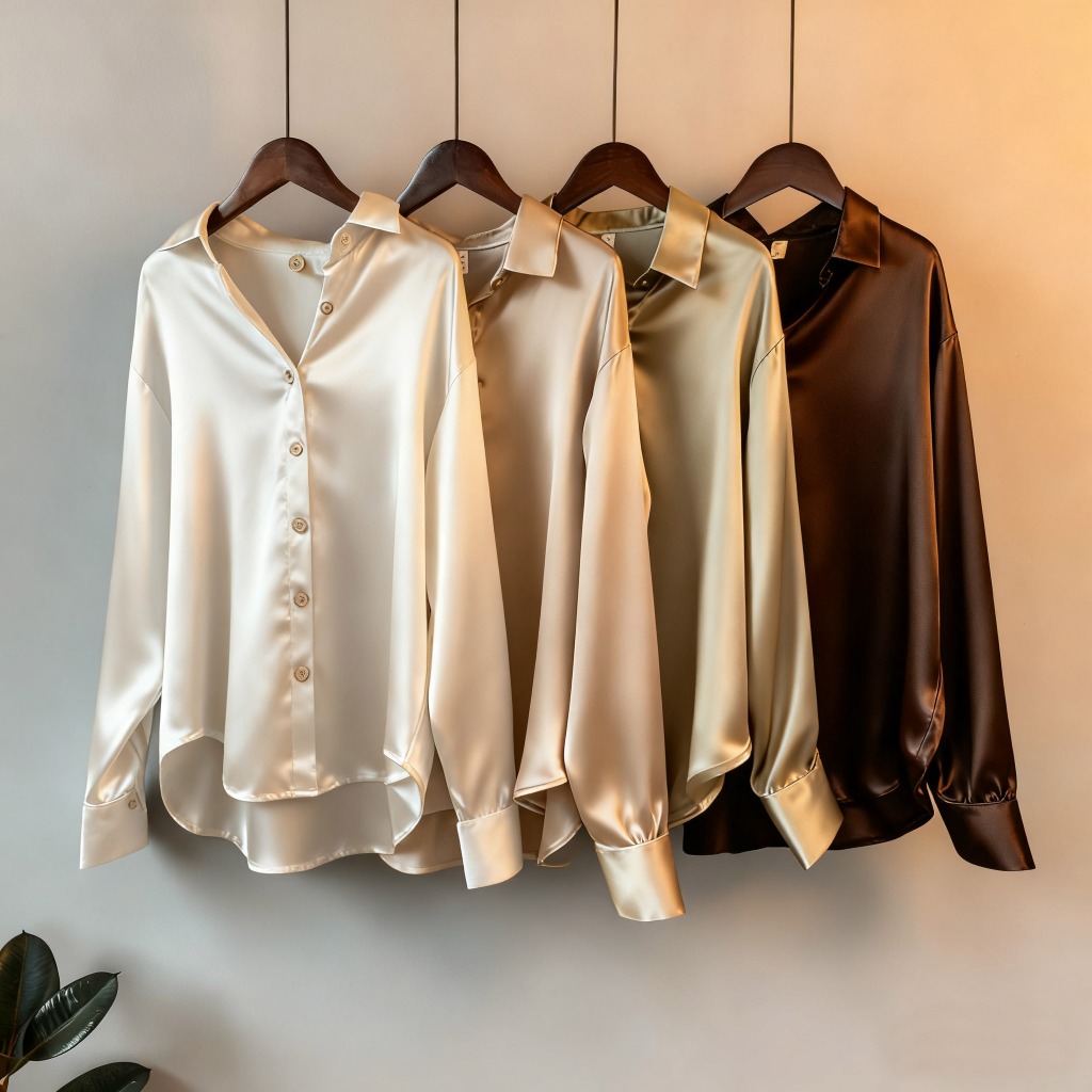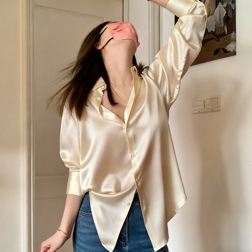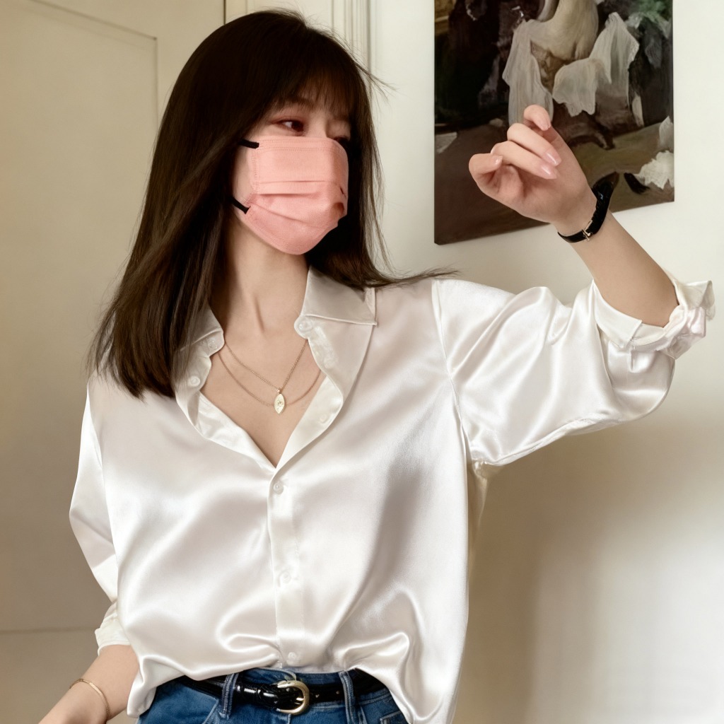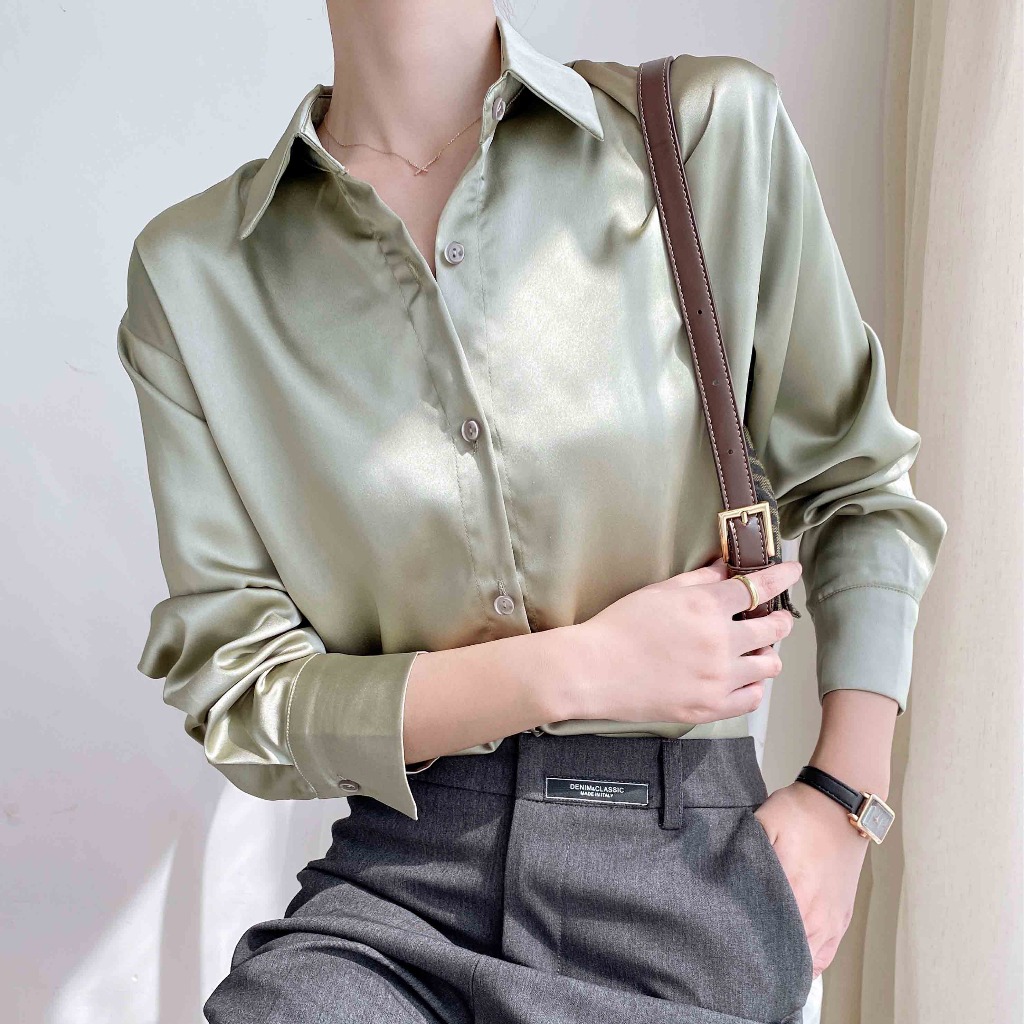 Women's satin long-sleeved loose-fitting shirt, fashionable and casual top, plus size. suitable