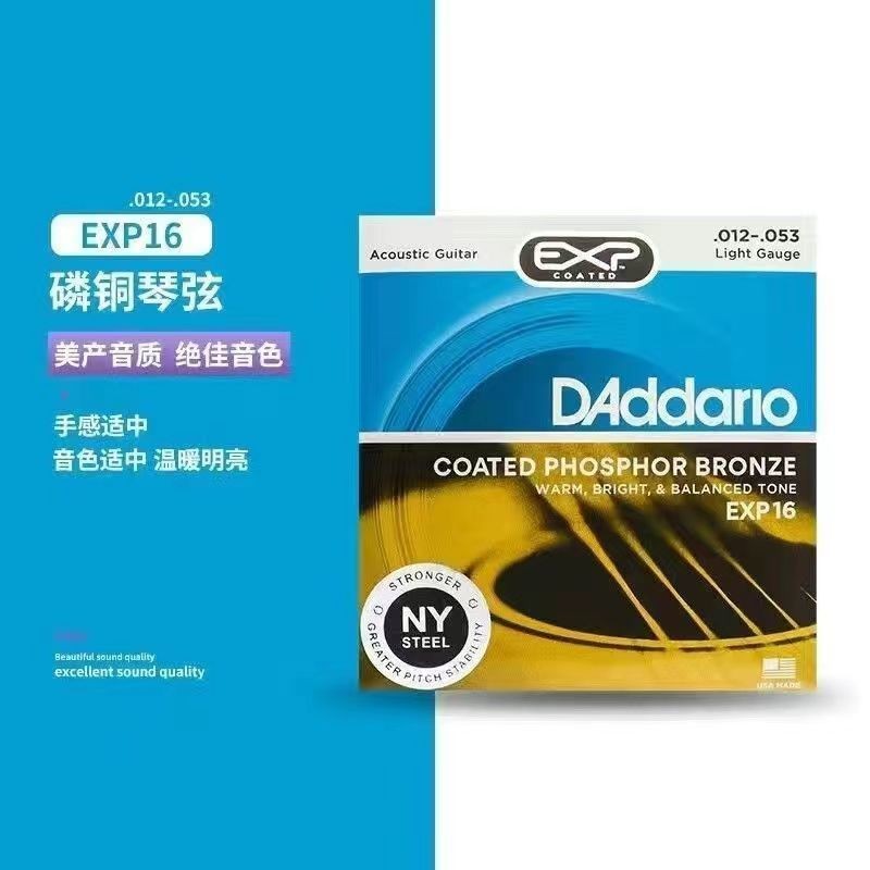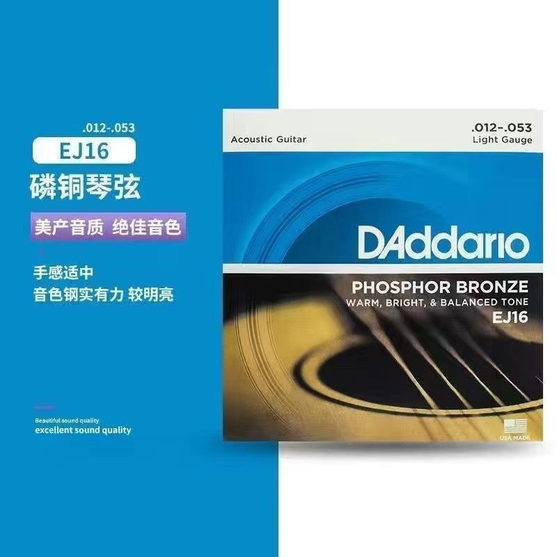 DAddario Guitar Strings - Phosphor Bronze Acoustic Guitar Strings - EJ16 - Rich, Full Tonal Spectrum - For 6 String Guitars - 12-53 Light