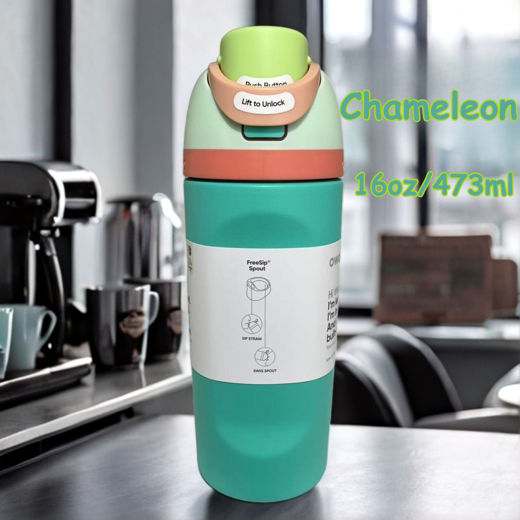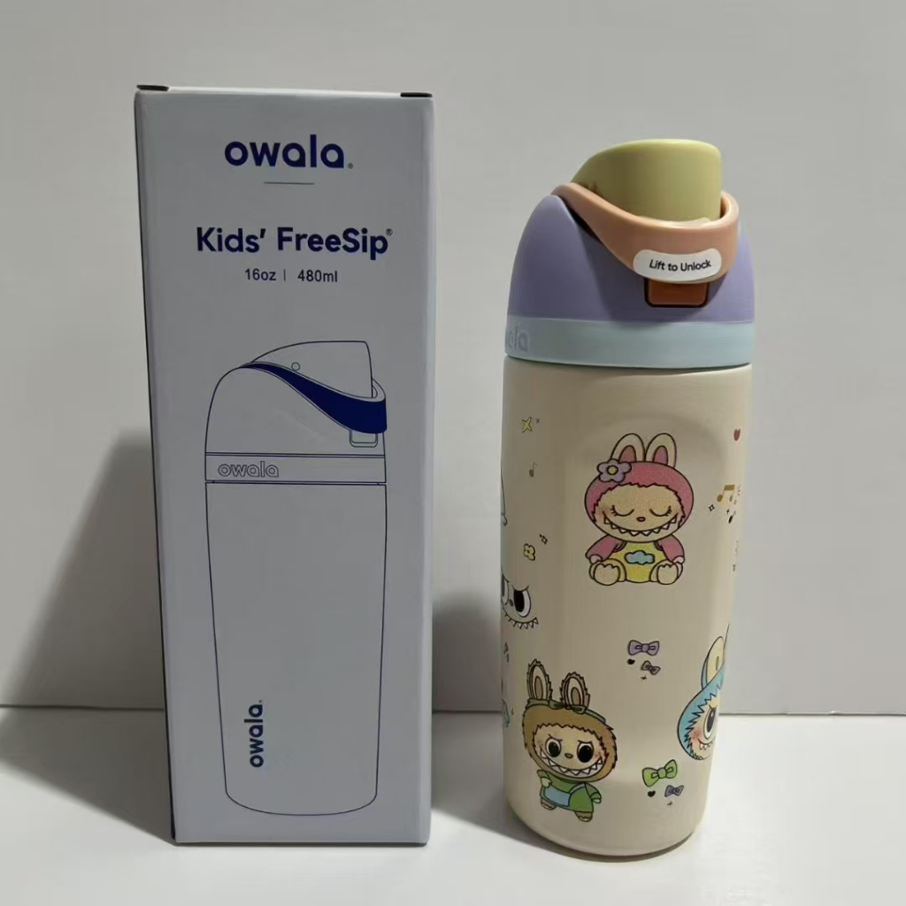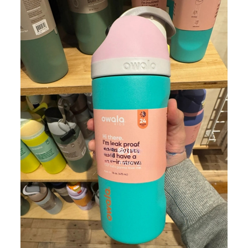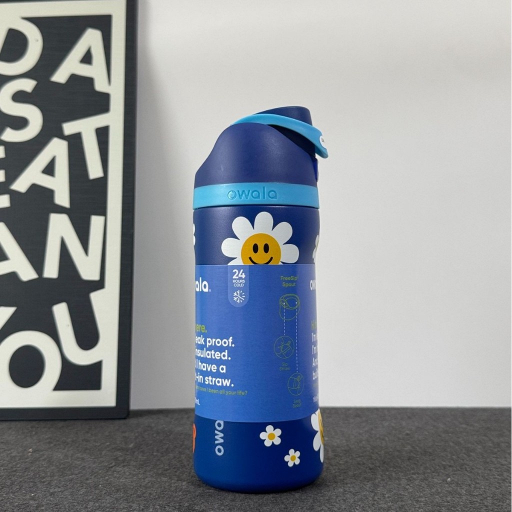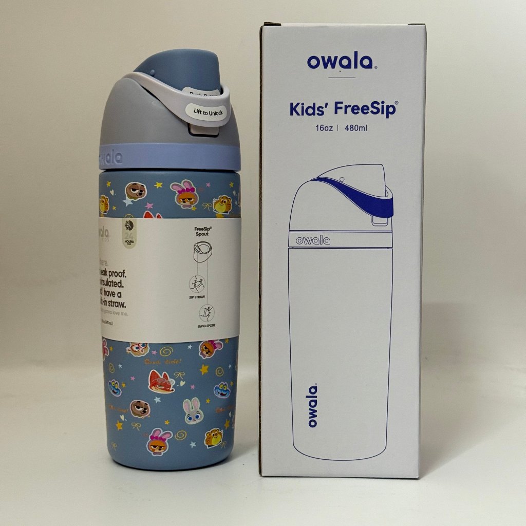 Owala FreeSip Kids 16oz Make Waves Owala Cup Stainless Steel Water Bottle BPA-Free Leakproof Thermos for School Travel & Outdoor Cute Insulated Tumbler with Straw