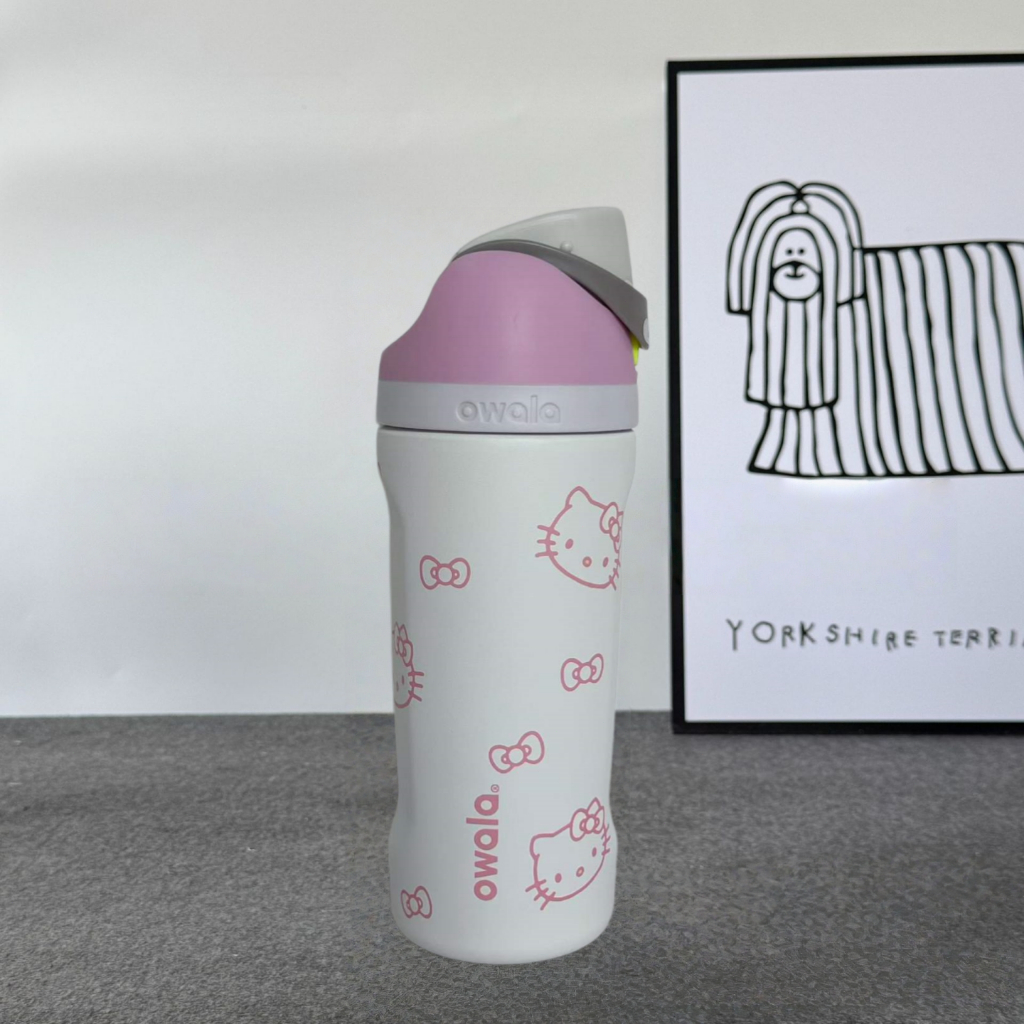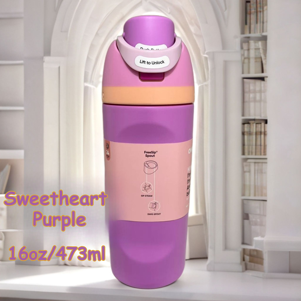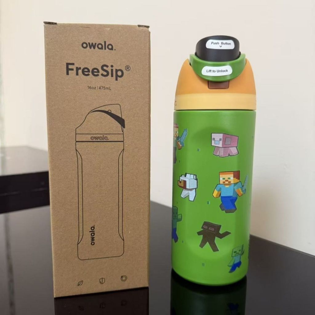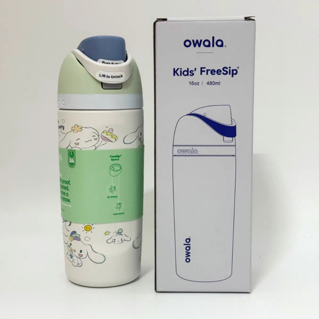Owala FreeSip Kids 16oz Make Waves Owala Cup Stainless Steel Water Bottle BPA-Free Leakproof Thermos for School Travel & Outdoor Cute Insulated Tumbler with Straw