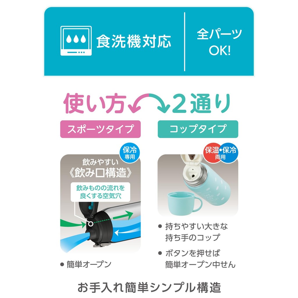 Thermos Vacuum Insulated 2-Way Bottle 0.8L/0.83L Mint Beige Direct Drink With Cup Kids FJJ-802WF MBE