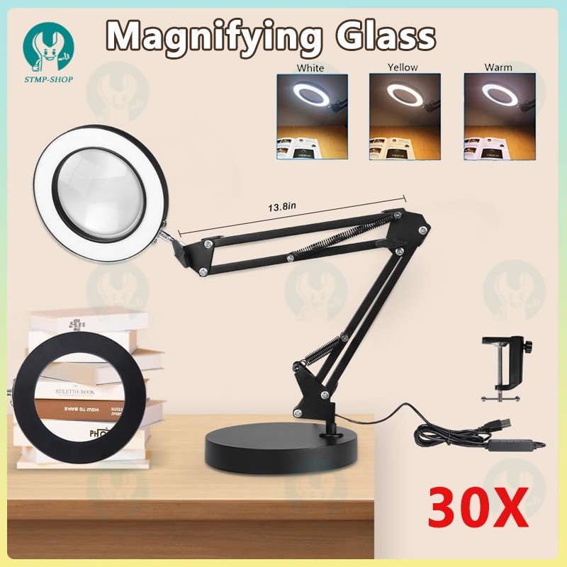 【2025 NEW】Foldable Professional 30X Magnifying Glass Desk Lamp Magnifier LED Light Reading Lamp with 10 Dimming Modes