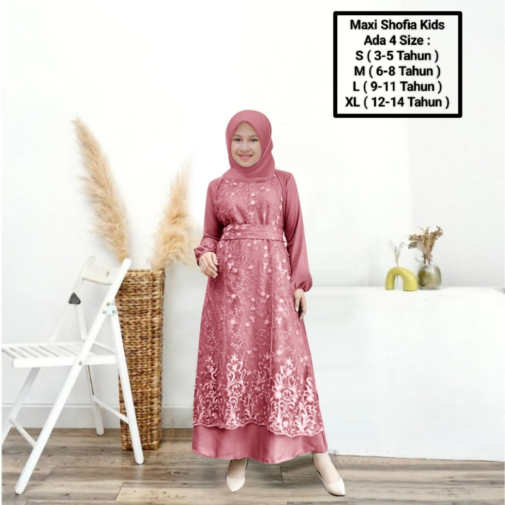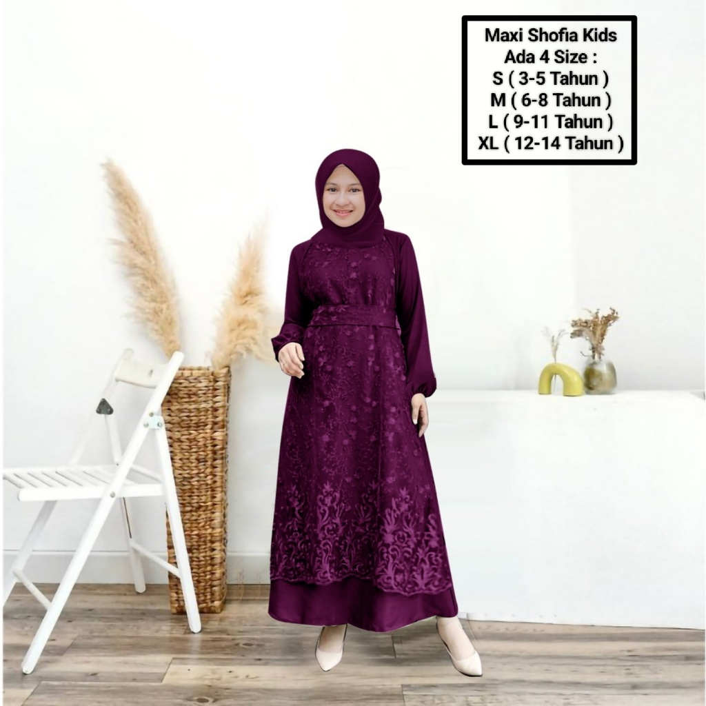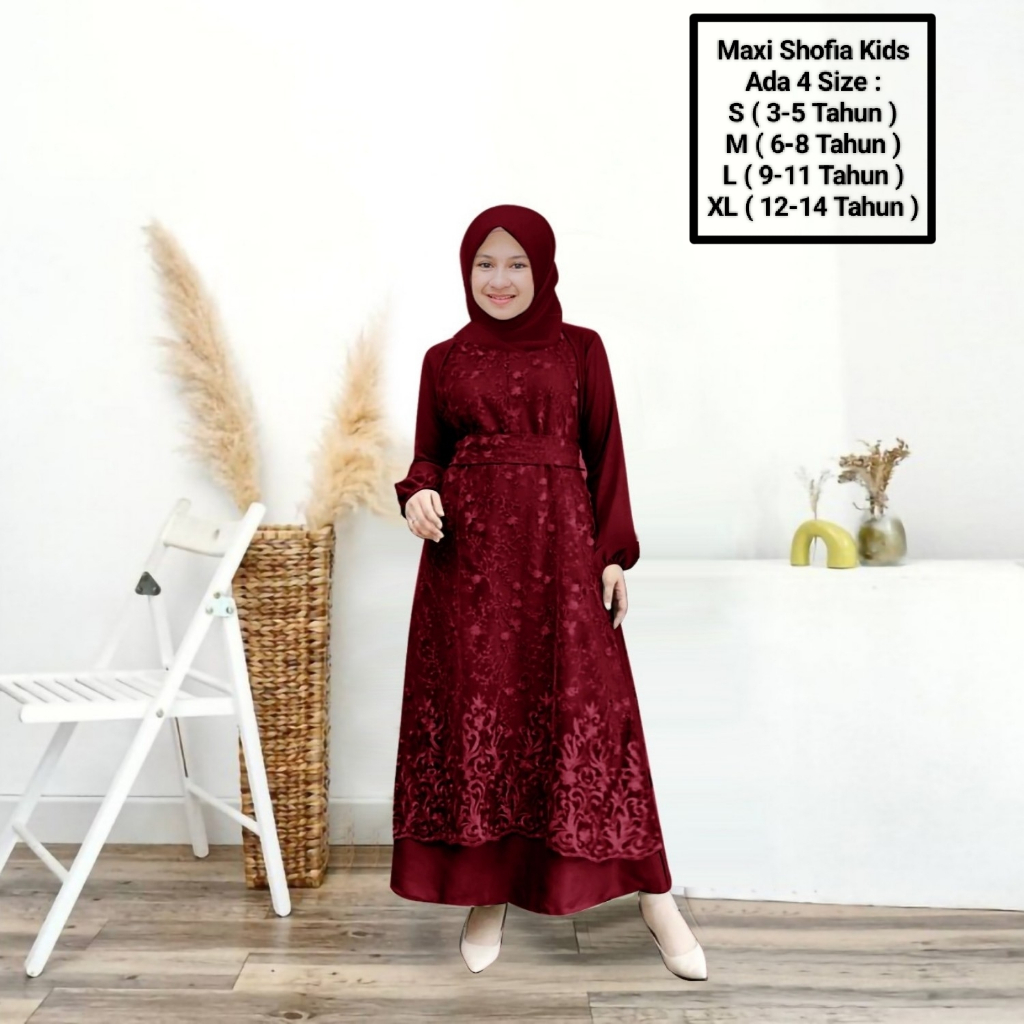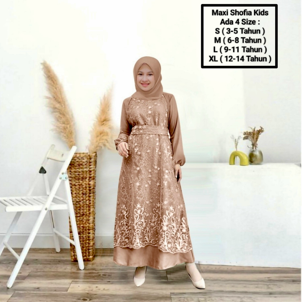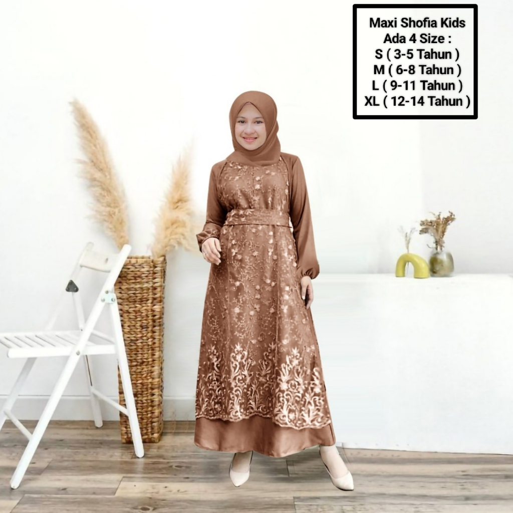 Maxii Shofia kids 3-14 Years/Latest Muslim Girls' Clothing/Matt SatinVelvet Mix Pearl Brocade