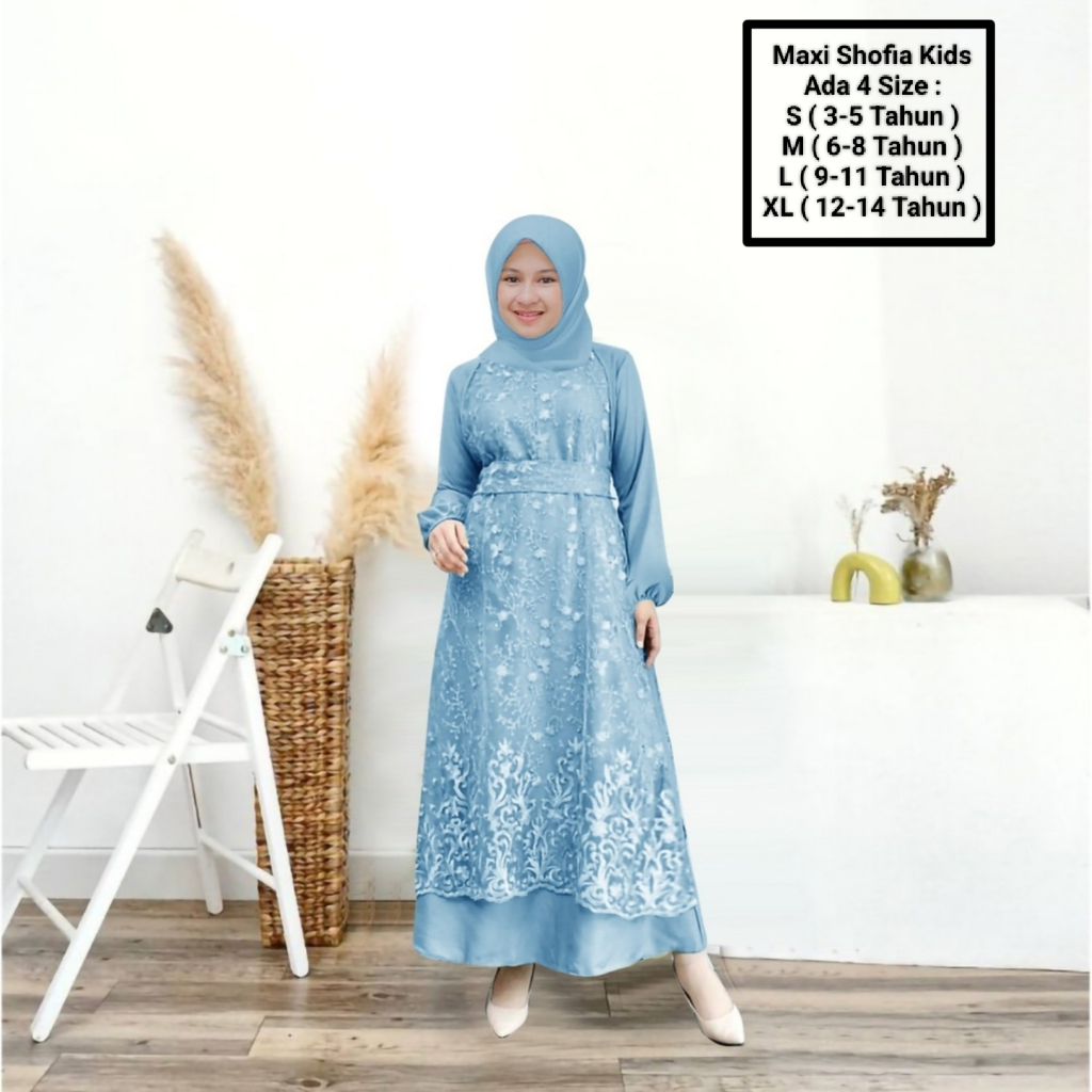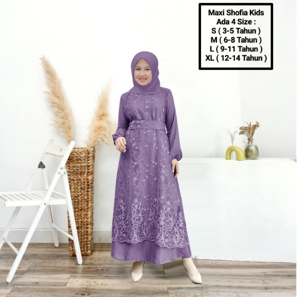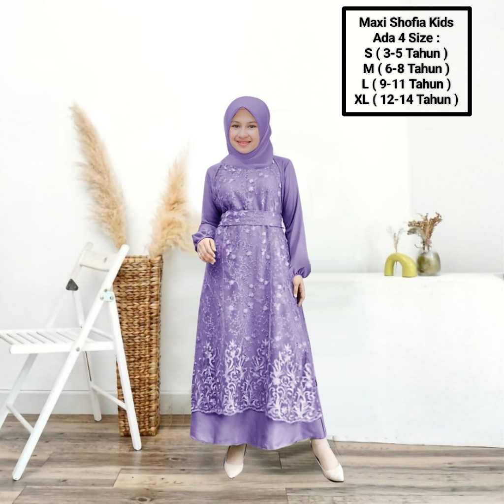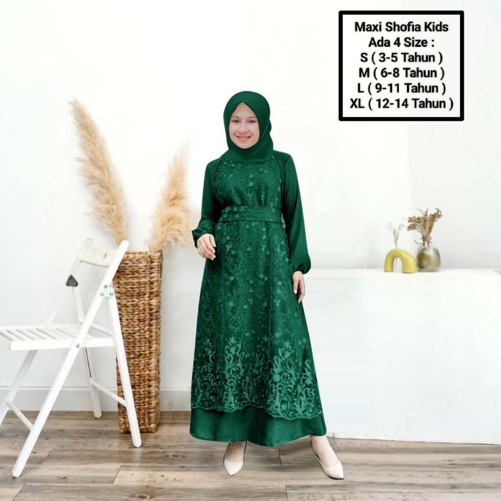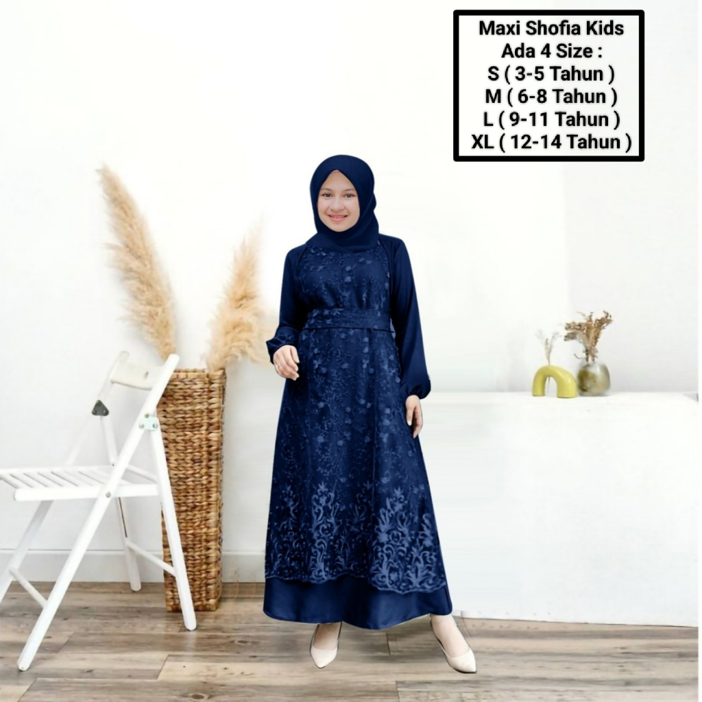 Maxii Shofia kids 3-14 Years/Latest Muslim Girls' Clothing/Matt SatinVelvet Mix Pearl Brocade