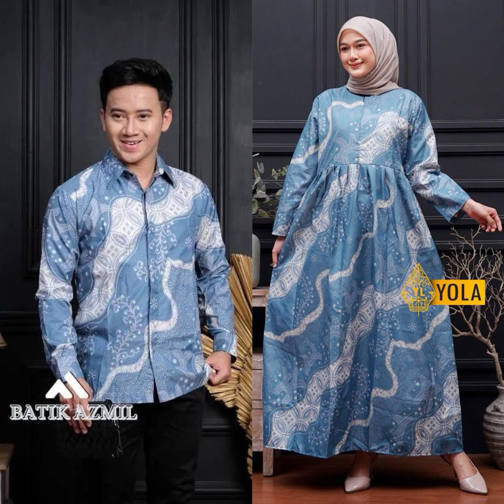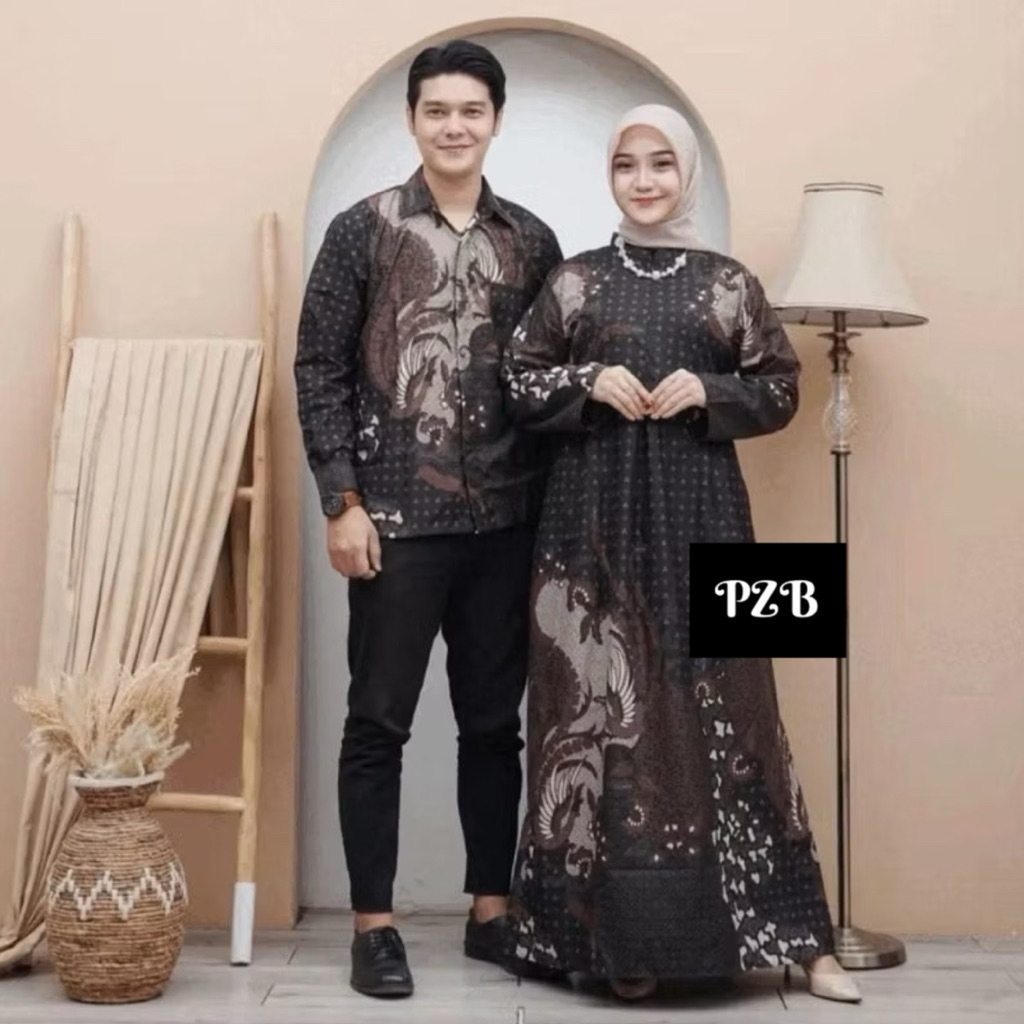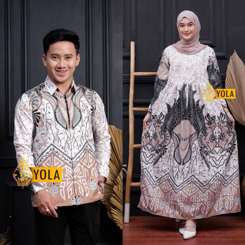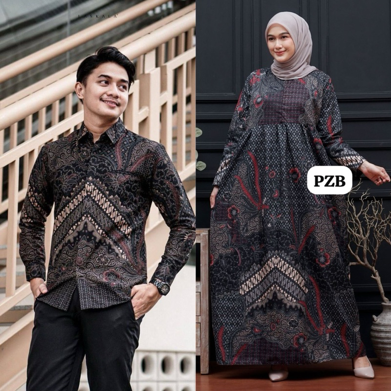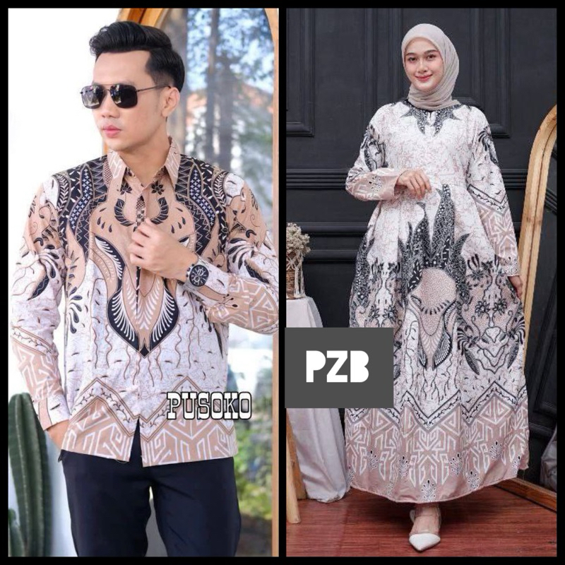 KATUN KEMEJA Couple Batik Gamis Pair of Men's Long Sleeve Batik Shirts, Soft Cotton, Nursing Friendly