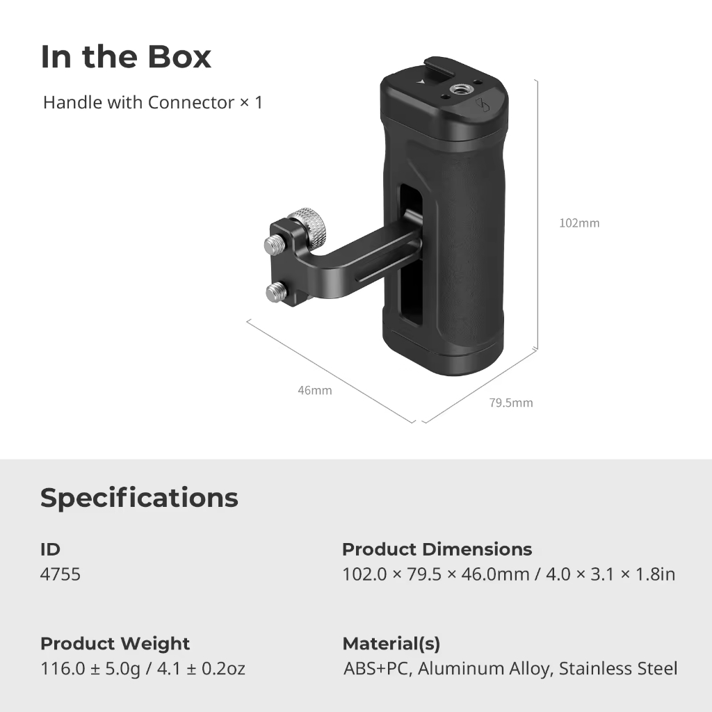 SmallRig Mini Side Handle for 1/4"-20 Threaded Holes Lightweight Portable Camera Cage Grip for Sony for DSLR with Cold Shoe 4755