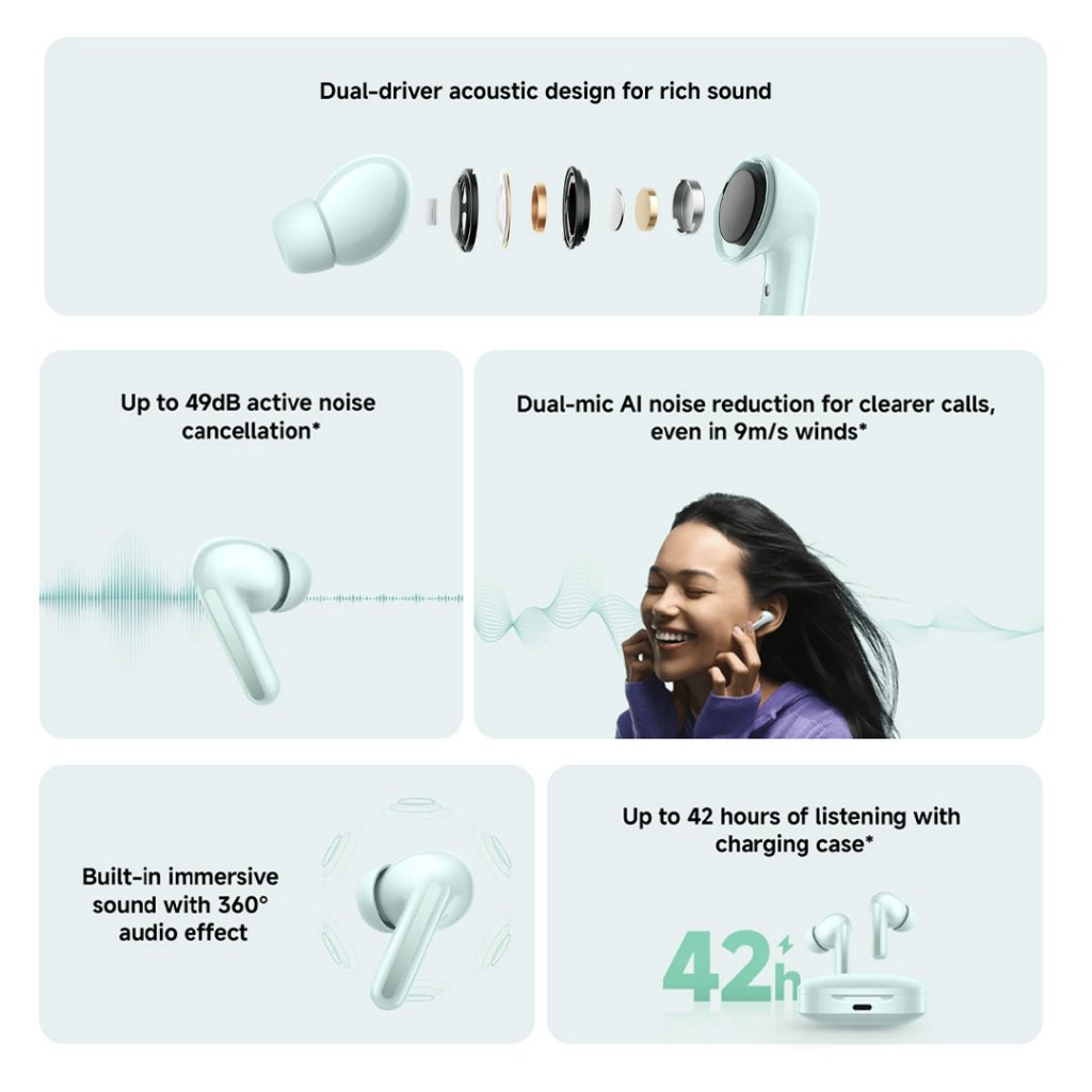 Xiaomi Redmi Buds 6 | Dual-driver acoustic design for rich sound | Up to 49dB active noise cancella