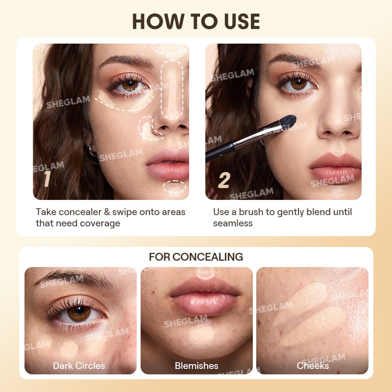 SHEGLAM Rapid Retouch Cream Concealer Full Coverage Crease-Proof Long-Lasting Eye & Face Makeup