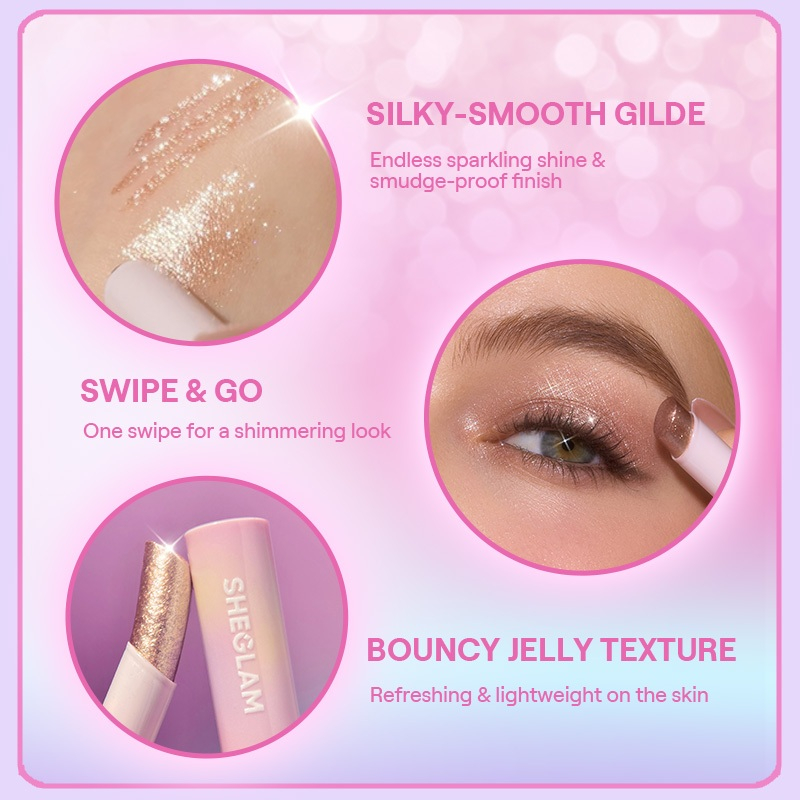 SHEGLAM Crystal Jelly Glaze Stick Multi-Use Glitter Shimmer Jelly Eyeshadow & Highlighter Makeup Cosmetics