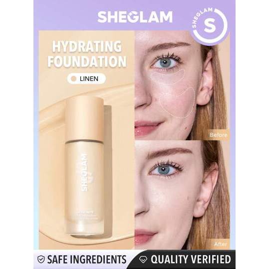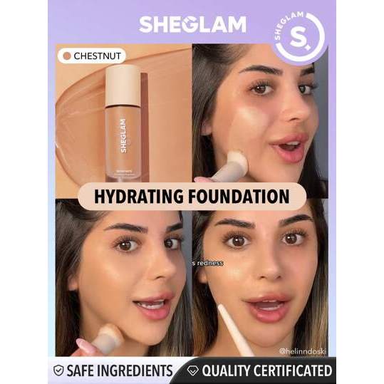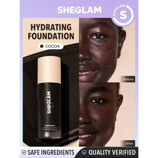 SHEGLAM Skinfinite Hydrating Foundation-Chantilly Flawless Dewy Foundation Hydrating Coverage Invisible Pore Concealer Pore-Less Non-Greasy Lightweight Natural Soft Liquid Foundati
