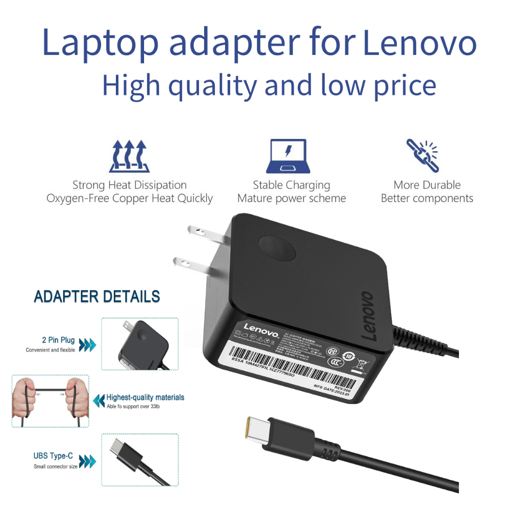 65W Type C Wall laptop Adapter for Lenovo ThinkPad X1 Carbon 20V3.25A AC Charger Laptop Power Supply