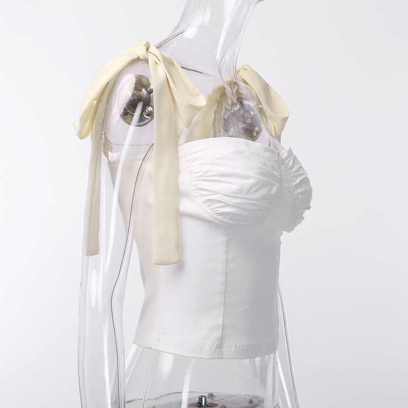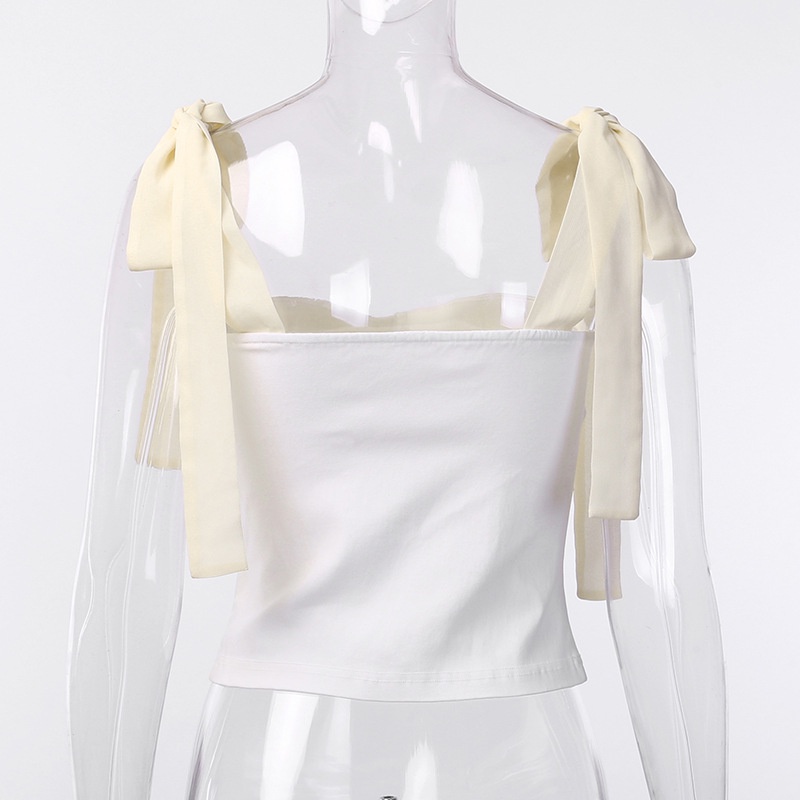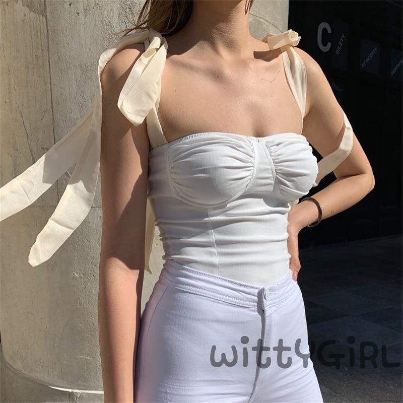 Women Lace Up Bow Camisole, Summer Casual Sleeveless Low Cut Bodycon Backless Crop Top