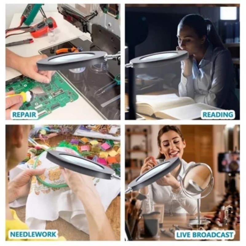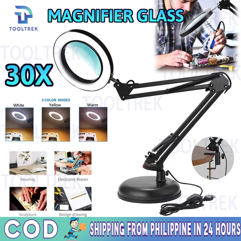 Foldable Professional 30X Magnifying Glass Desk Lamp Magnifier LED Light Reading Lamp With Three Dimm with 10 Dimming Modes