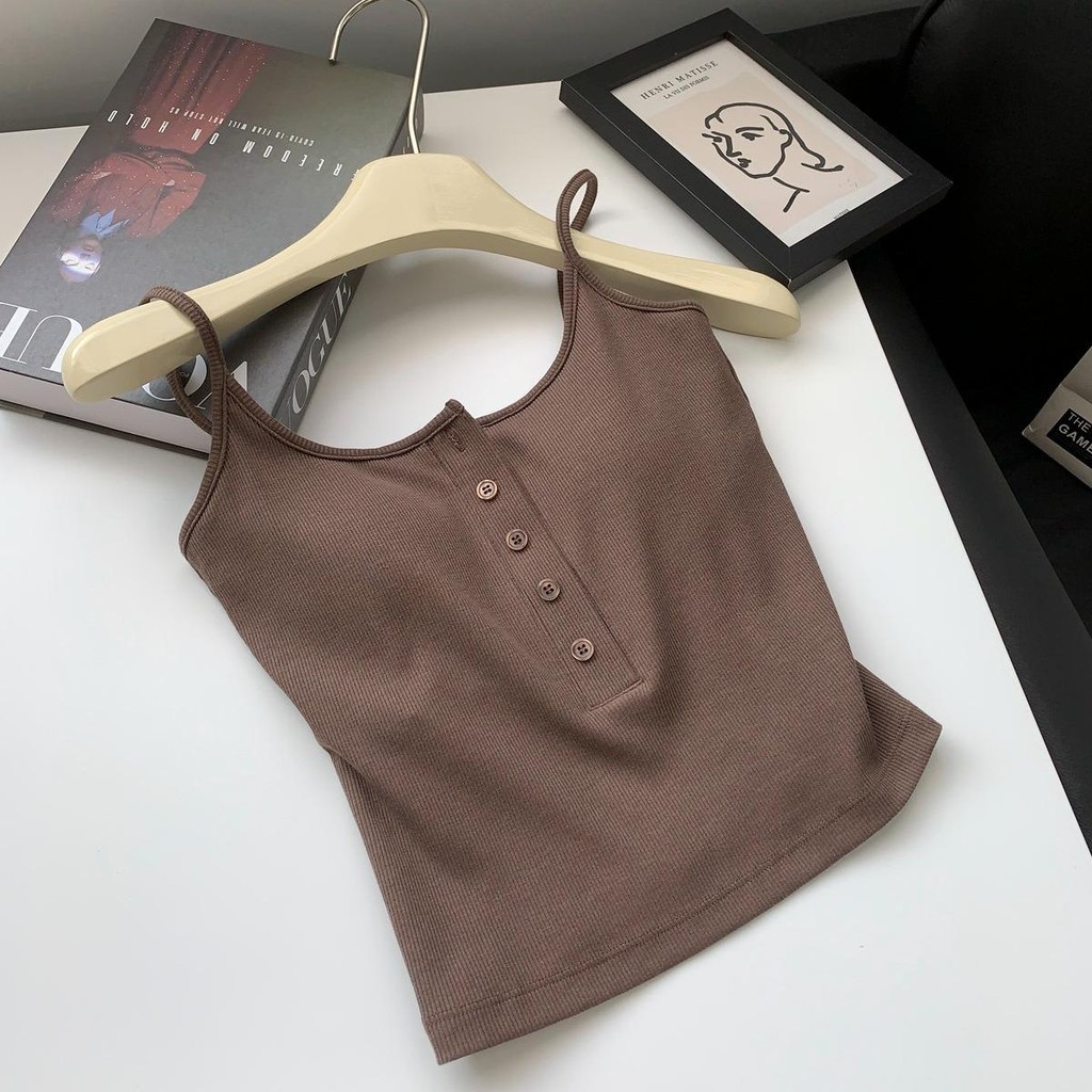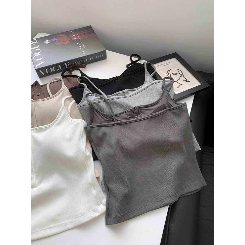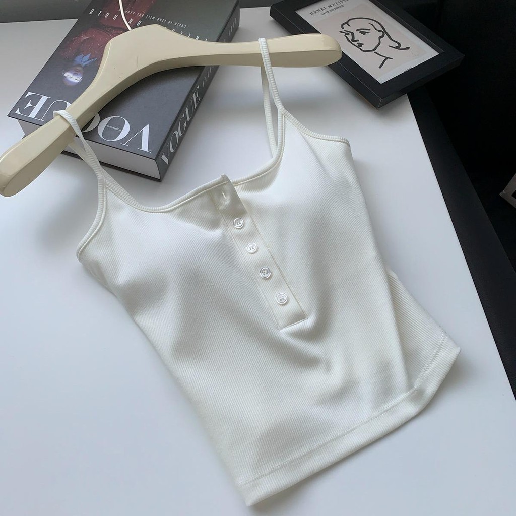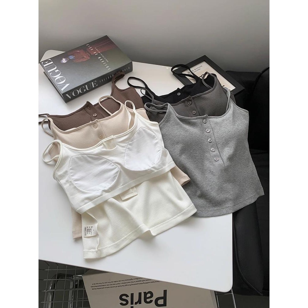 New summer solid color small camisole with built-in chest pad to cover side chest x8823