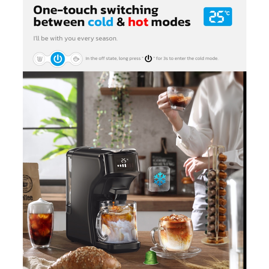 HiBREW H1B Capsules Coffee Machine 6 in 1 Hot&Cold Brew Espresso Dolce Gusto Nespresso Powder