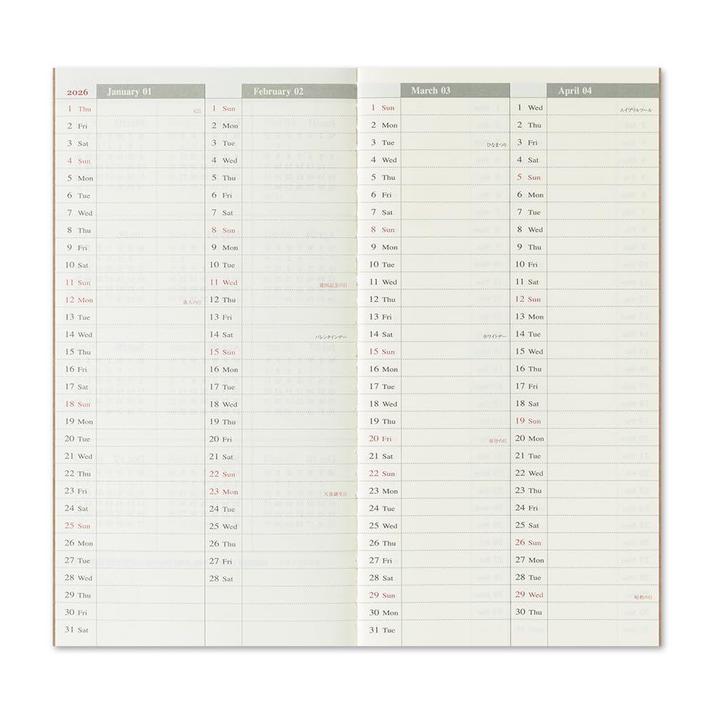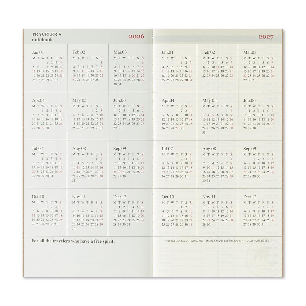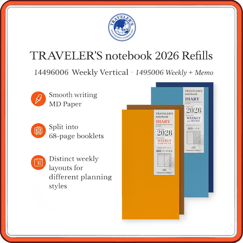 TRAVELER’S COMPANY 2026 Traveler’s Notebook Refill – Regular Size Weekly Vertical & Weekly + Memo Planner Inserts (January Start, MD Paper)