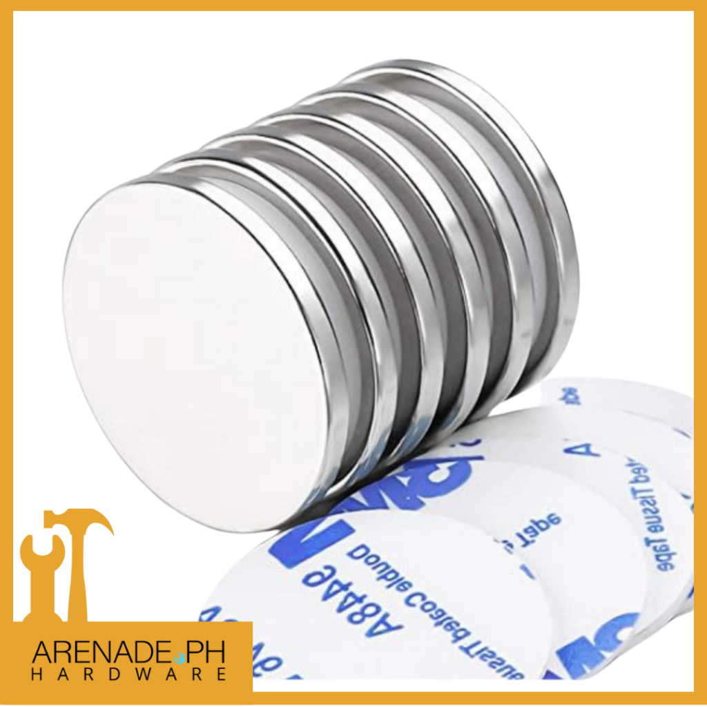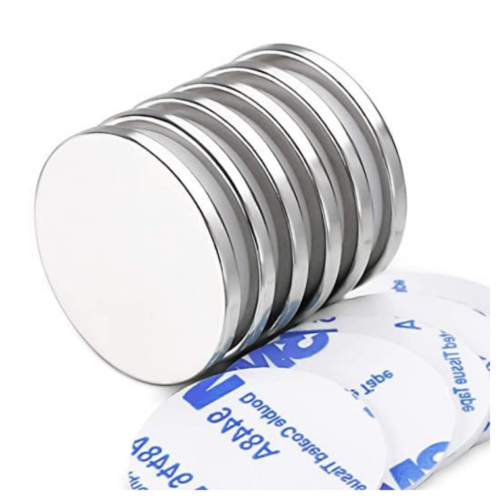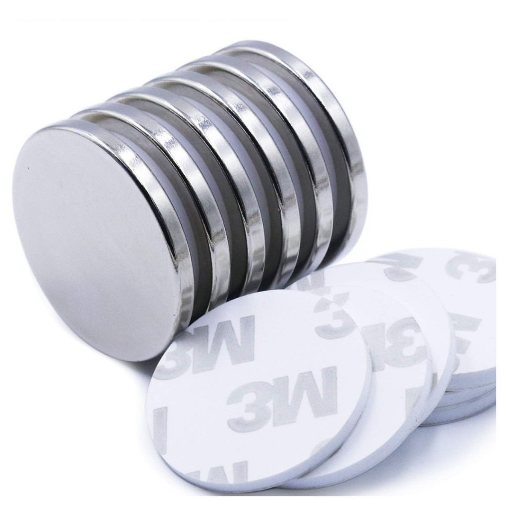 Strong Neodymium Disc Magnets with Adhesive – 1.26" D, 6-Pack