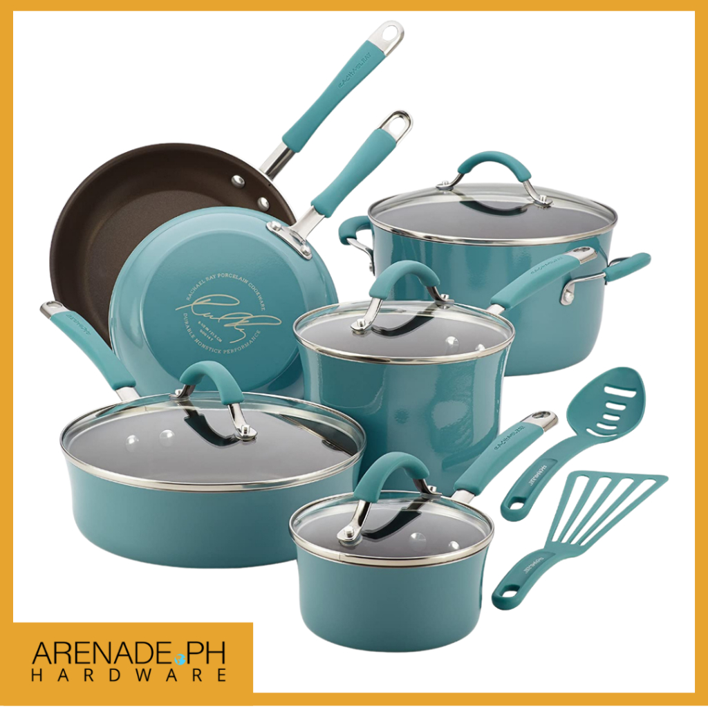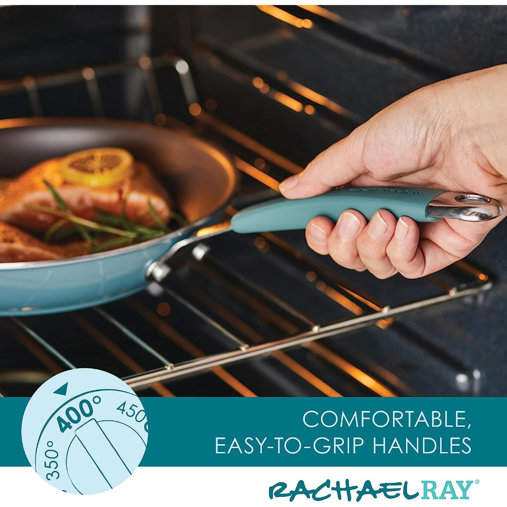 Rachael Ray Cucina Nonstick Cookware Set – 12 Pieces, Agave Blue