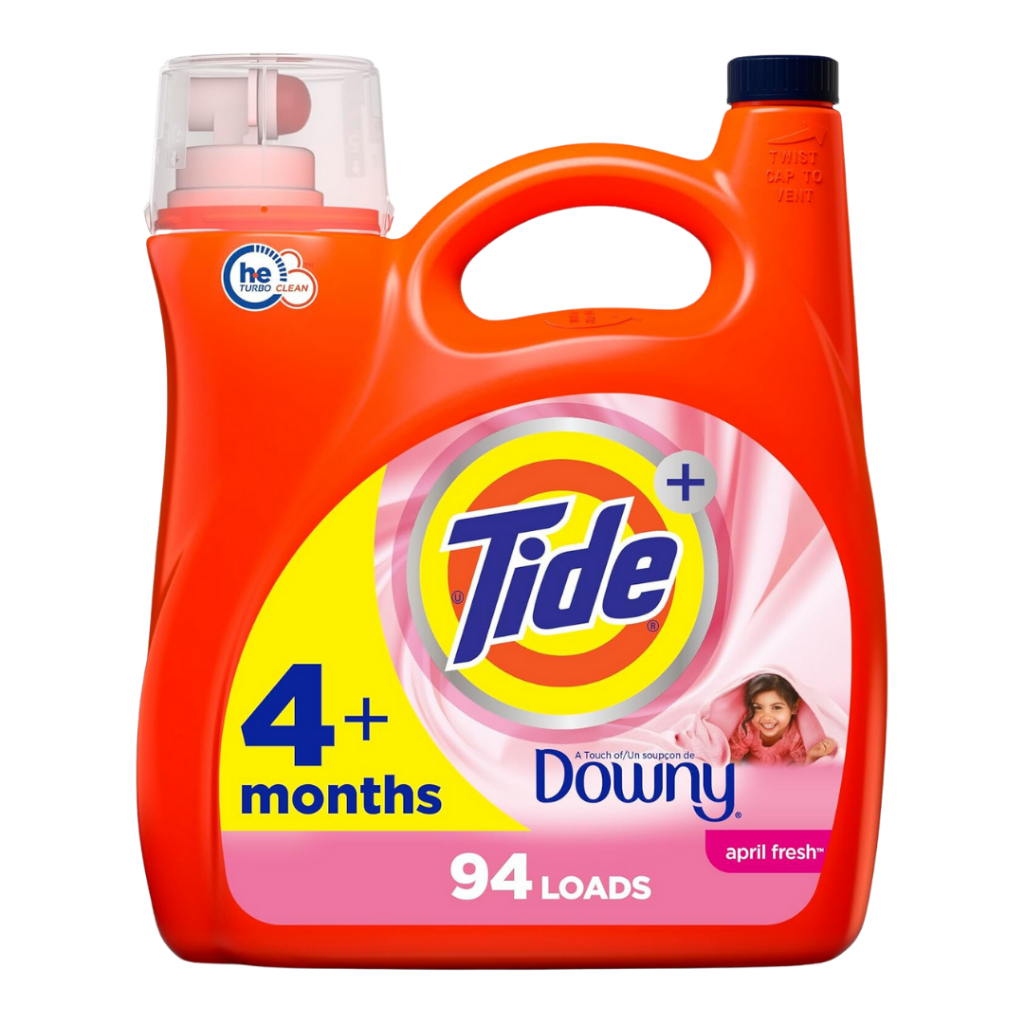 Tide plus Downy Liquid Laundry Detergent Soap, April Fresh Scent, HE Compatible, 94 Loads, 132 fl oz